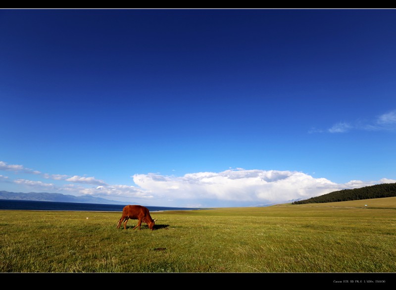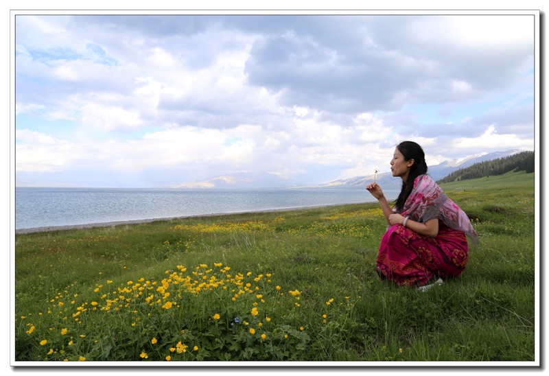期待已久的蓝天白云终于出现了,在配上赛里木湖那深蓝色的湖水,以及湖边草地上那各种颜色的小野花,让人激动不已。我曾到过青海湖的蓝色,搭配湖边那一望无际的油菜花;也曾到过希腊的爱琴海,为深蓝色海水上的那一朵朵白色的小浪花而惊叹。不过当我看到赛里木湖的从深蓝到浅蓝变幻莫测的湖水,在搭配上蓝天白云,湖边的草原和各种绽放的野花,还有草原上正在吃草的骏马,犹如置身于一副优美的画卷之中,没有什么比这更令人心旷神怡了。