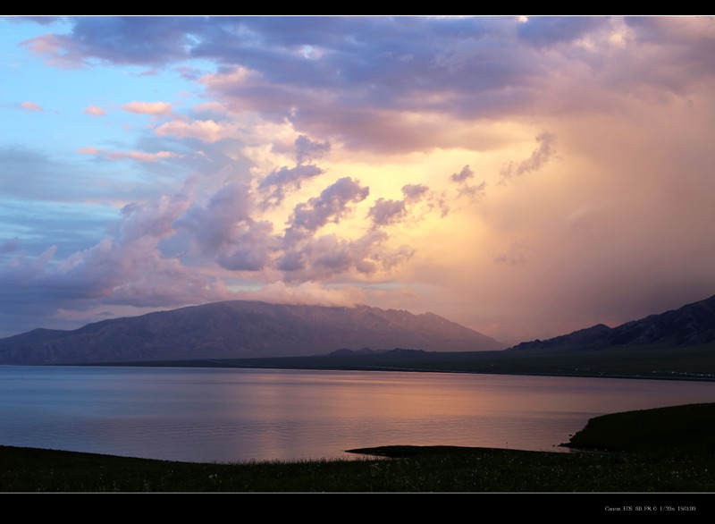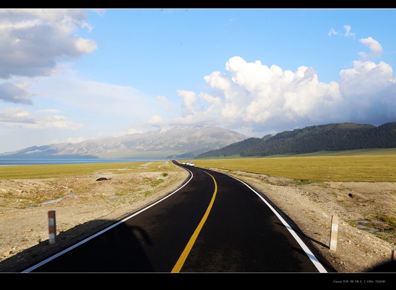 从乌鲁木齐到赛里木湖全程600多公里,深度游的人果然都比较开朗随和,经过一番自我介绍,大家一路上欢声笑语,一天的车程也不觉得那么辛苦。下午6点左右,我们终于到达了赛里木湖。