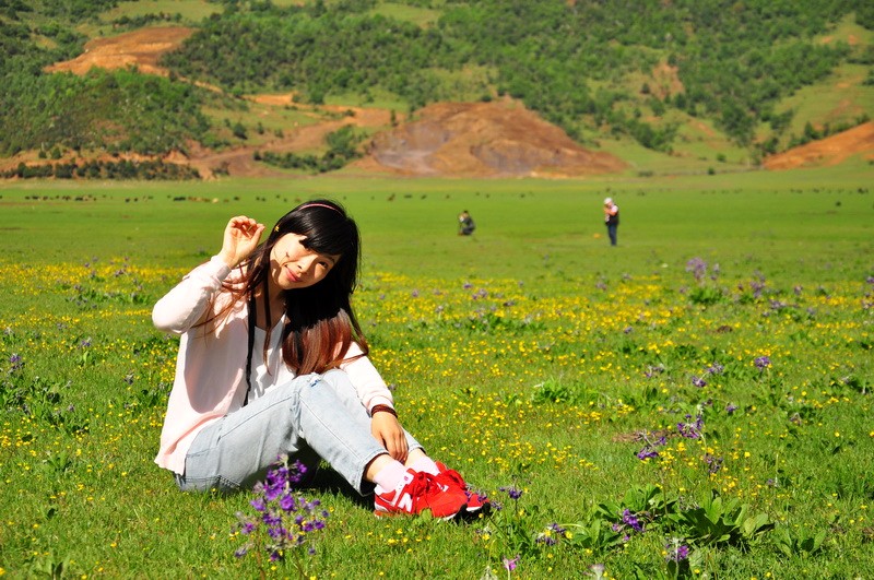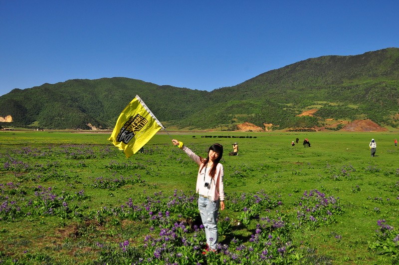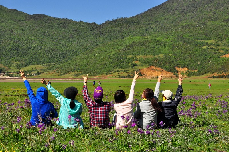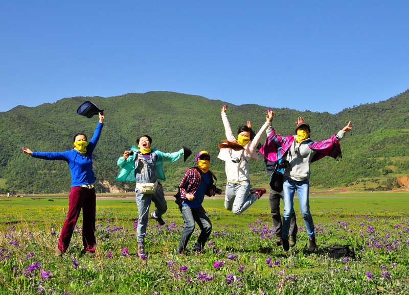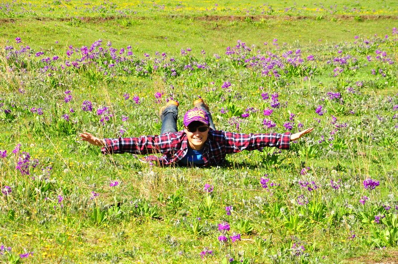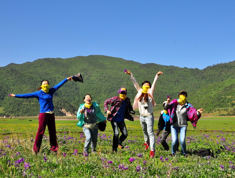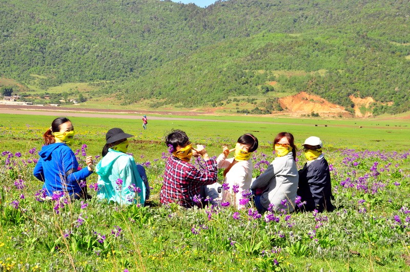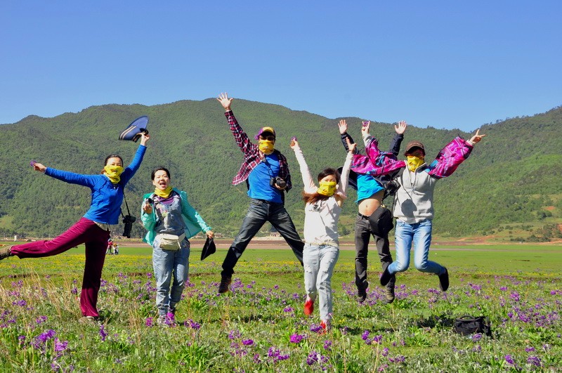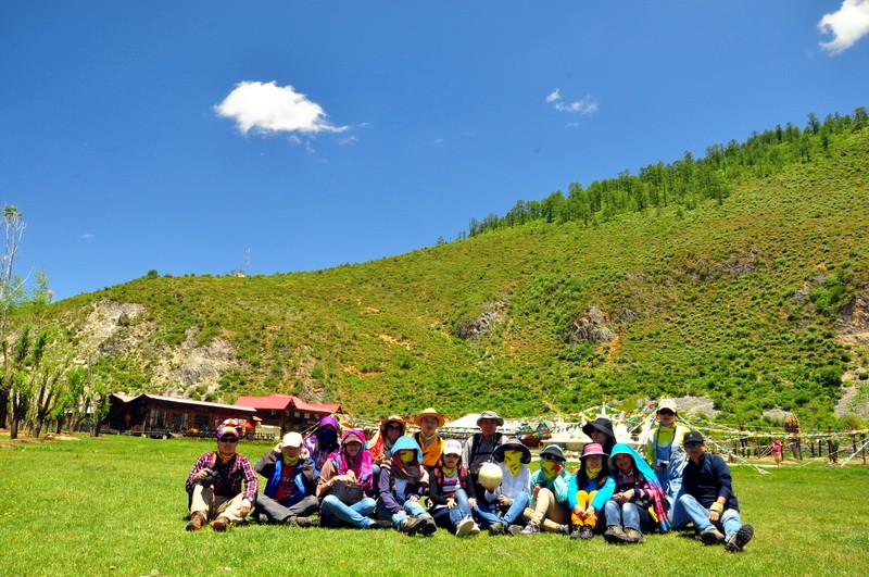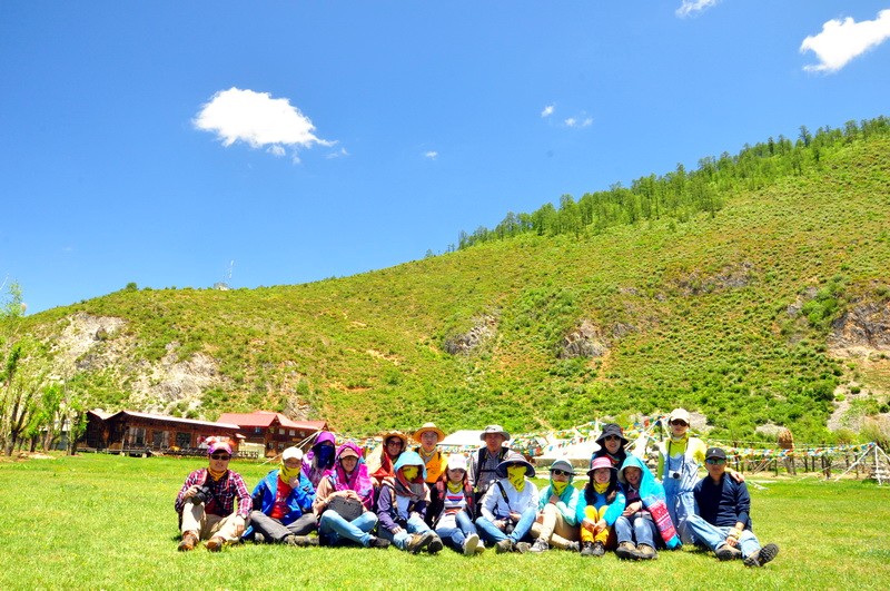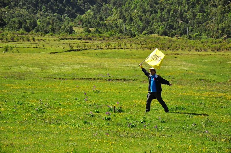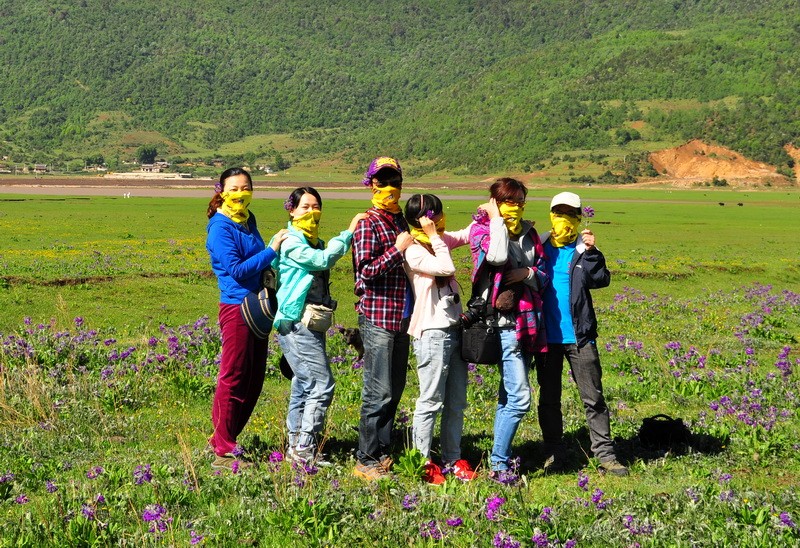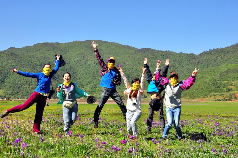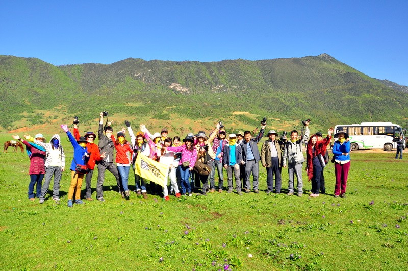 先到达了文海,大家一看到花海草原,就激动的四散行动,之召集到部分队员拍了集体照。