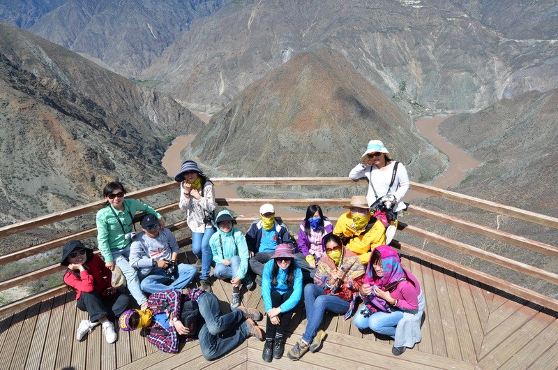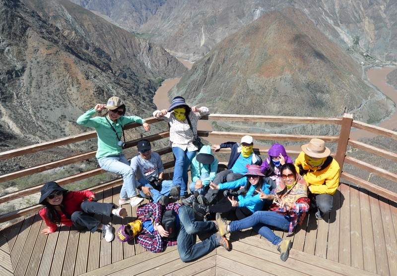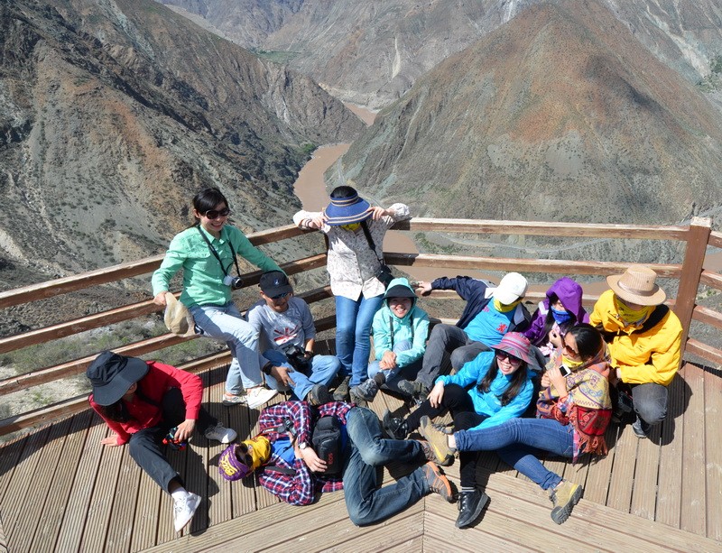 在金沙江月亮湾,又拍了集体照。林杨同学又被虐了一把。