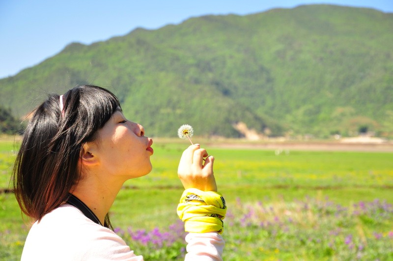 这个文艺小青年,看到花海,就来了个俯冲。