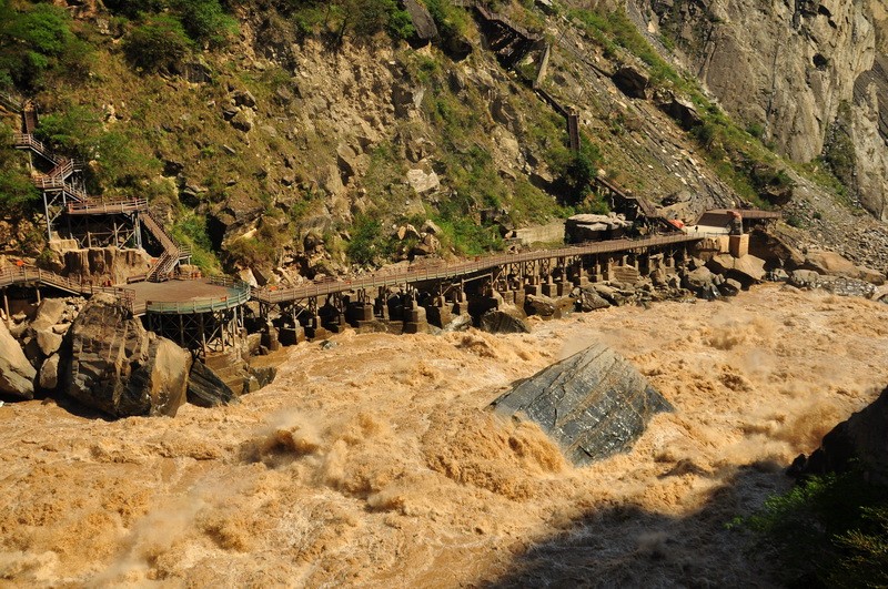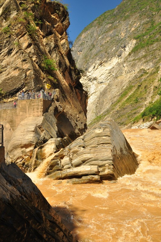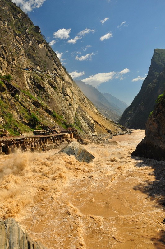 香格里拉这边的虎跳峡,大塌方。我们去的是丽江虎跳峡。隔江相望,恐怖的塌方现场。
