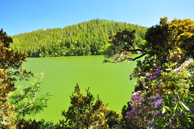 碧塔海,只有那么一小会,湖水是碧绿碧绿的颜色。