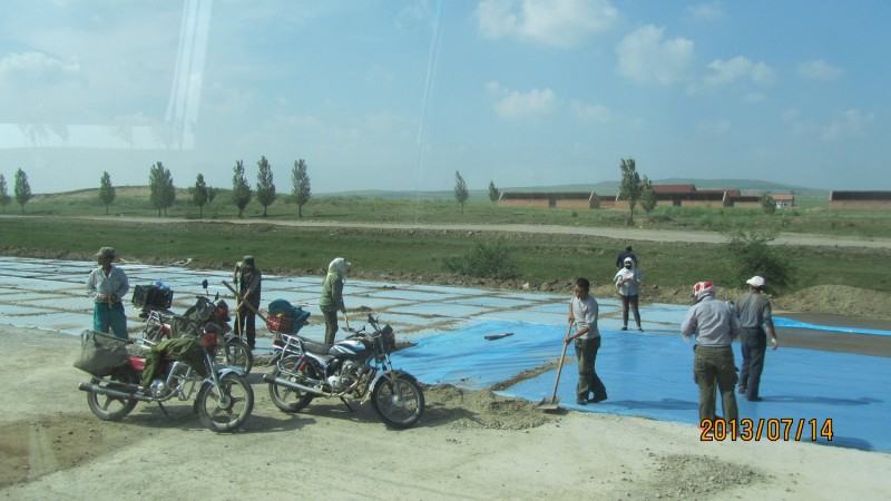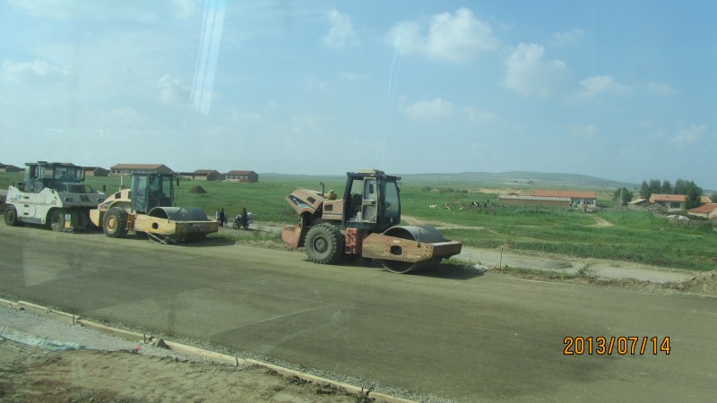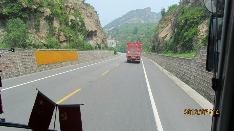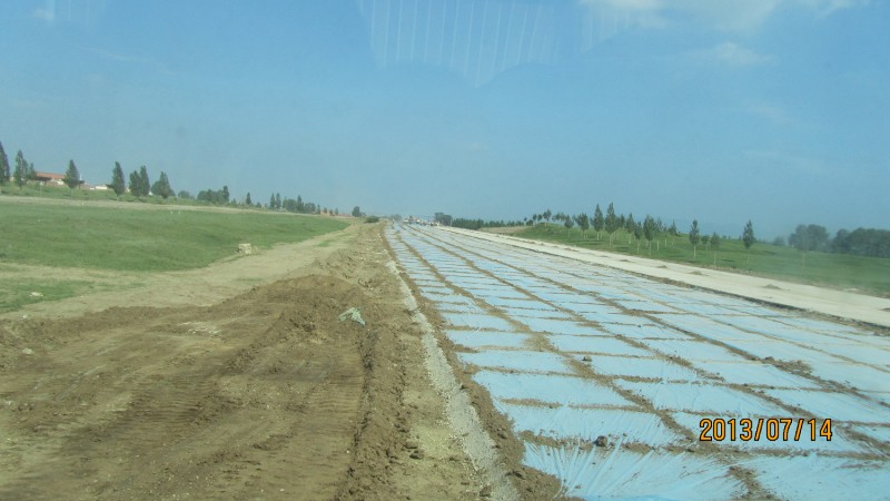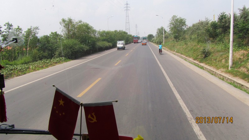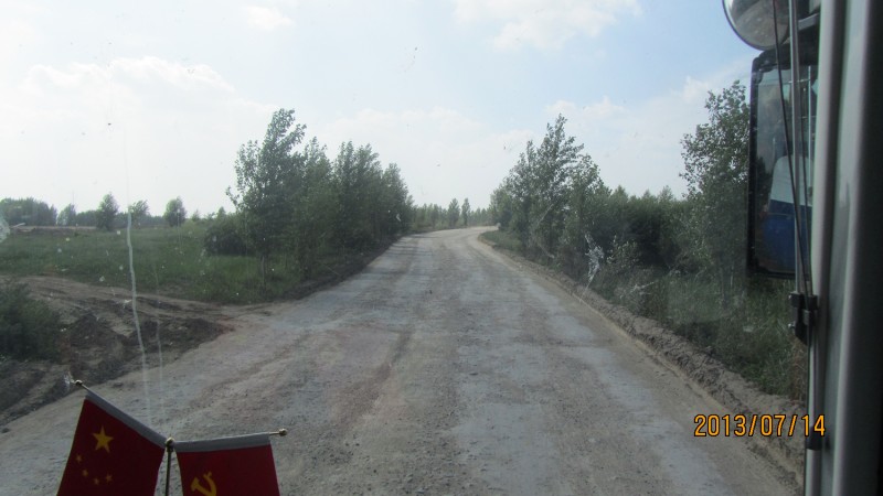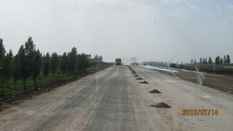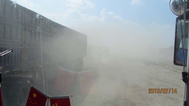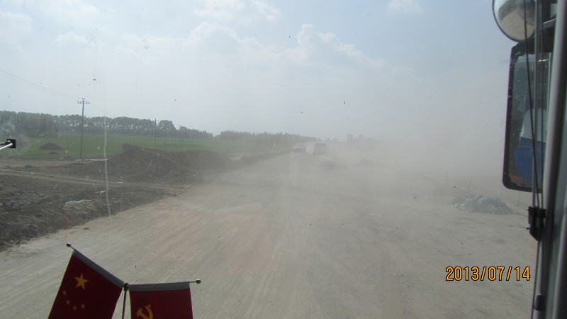 3点20分左右,有很长一段正在铺造新路,因此尘土飞扬,车速减缓。