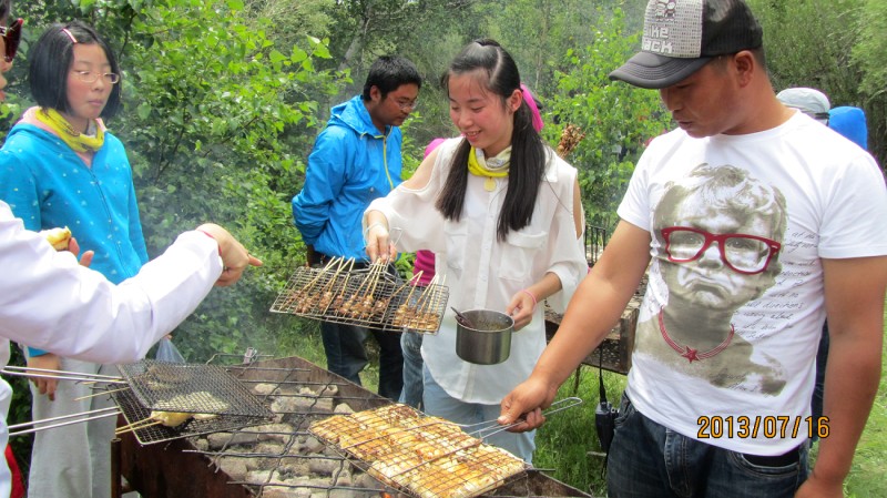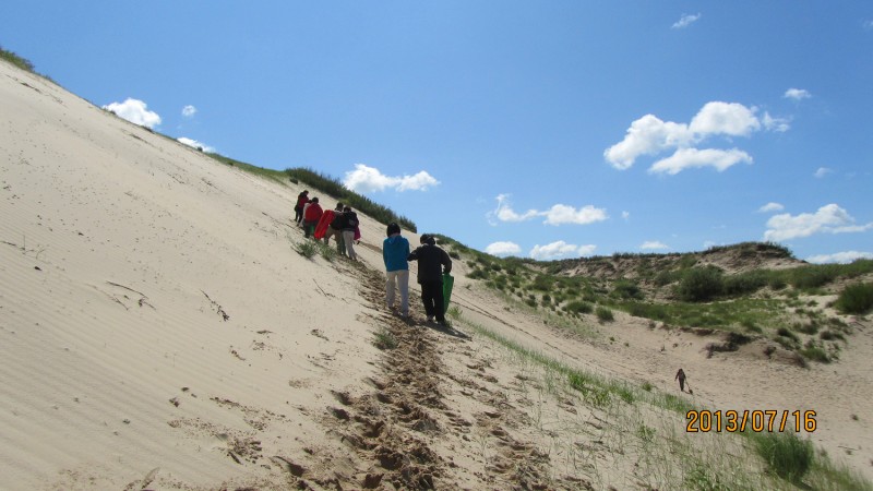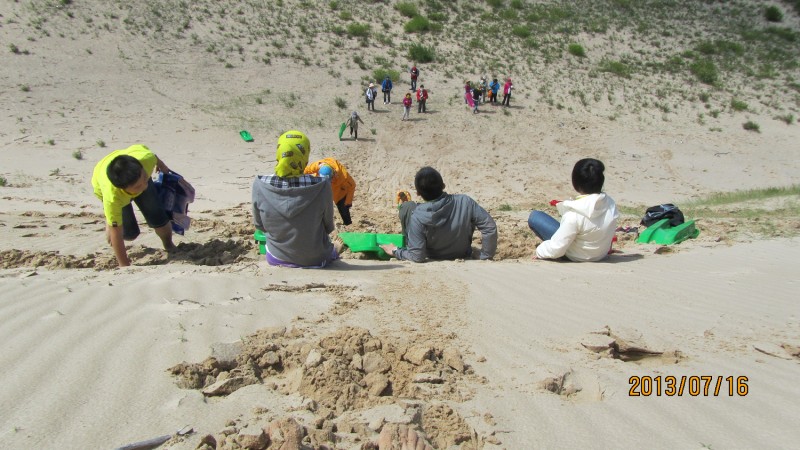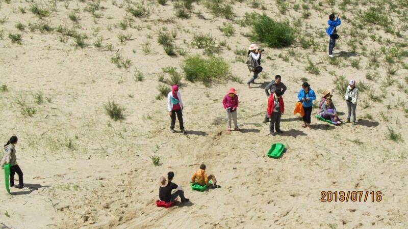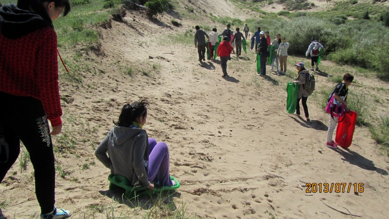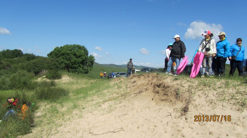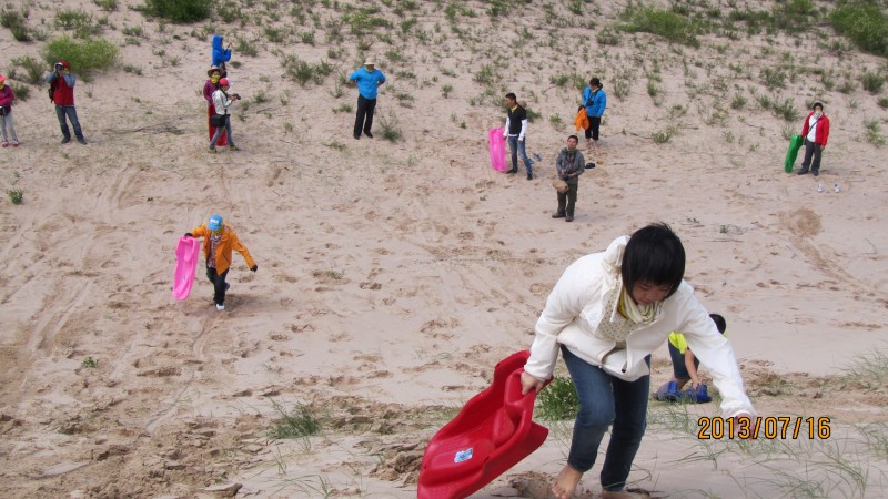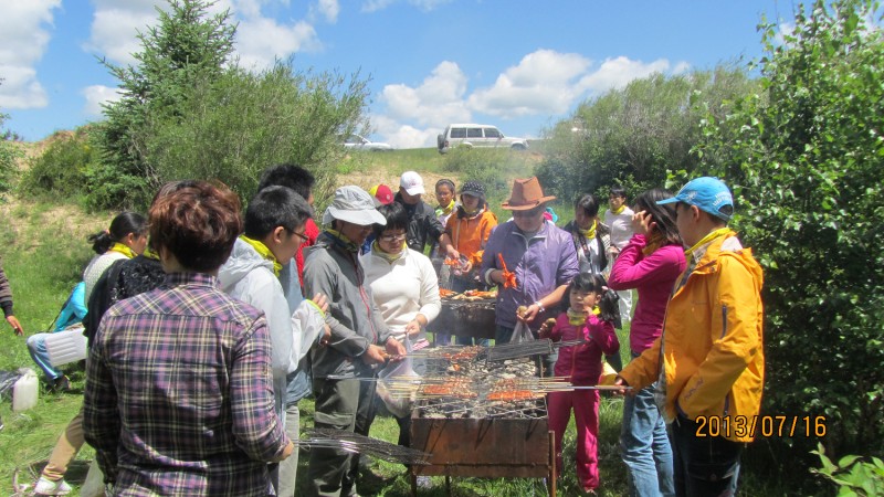 眼看大家虽然都喜欢滑沙,但是往上爬的过程可把每个人折腾坏了。努力爬几分钟,只为往下的那几秒。最后大多数人都瘫坐在沙场!!!!玩累了,中饭时间到。在草原烧烤不知是何模样儿。。。。。。。。滑沙结束,我又唱了回山歌!吼吼···