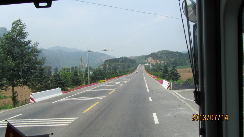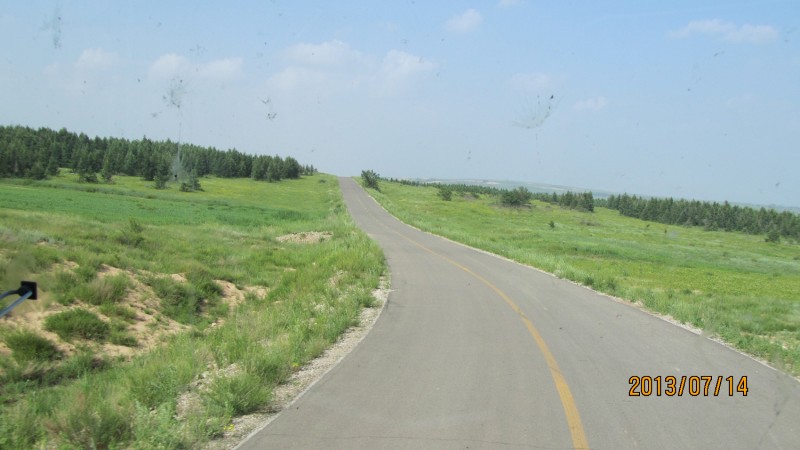 半小时后重新回到大道上,一路狂奔。。。。。。景色也一点一点弥漫双眼,窗外美丽的啦,只是张师傅的车子前玻璃很脏,导致对前拍的片片都不干不净,哈哈。