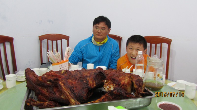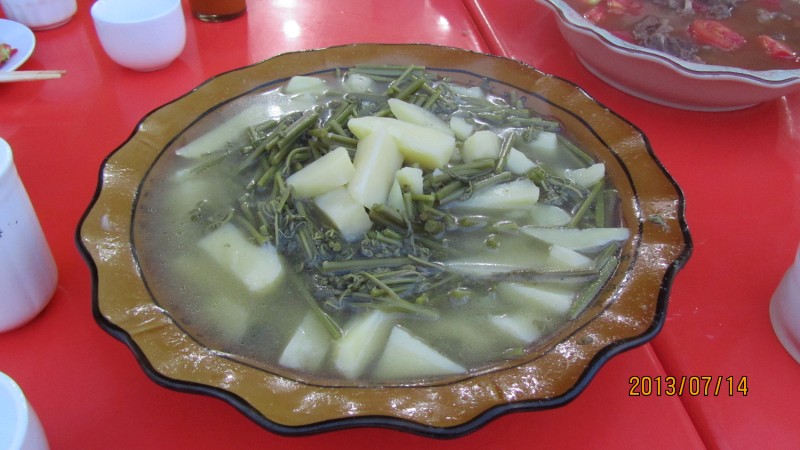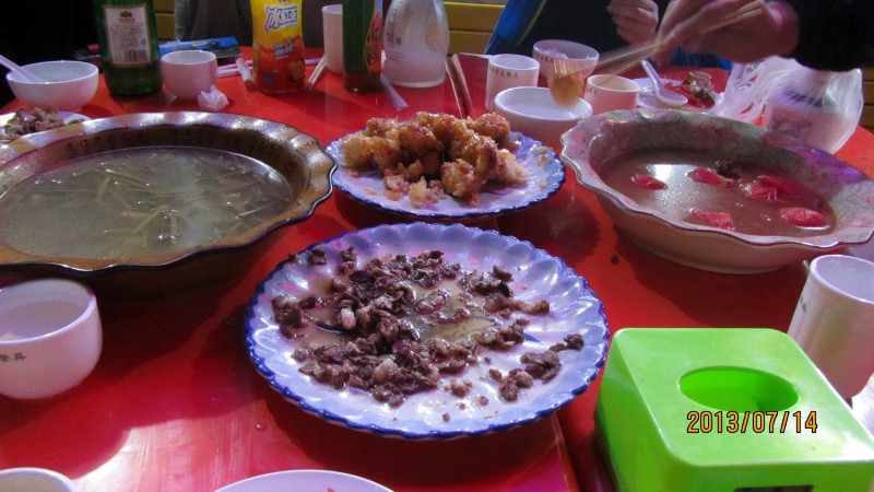 虽然我们已经使劲吃吃吃,还是有不少余量。每个盘直径约30公分,看这阵式,不装得满满的端不上桌啊,提醒将赶赴坝上的队员们,点菜需谨慎哪!同时初次体现到当地的重口味,这重口味与我们四川又不同,四川是辣、咸相互相佐,这就是单一的咸咸咸。饮食清淡的童鞋注意了噢!