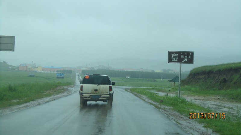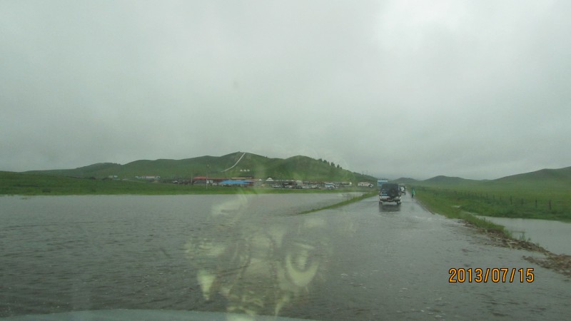 再次经过的道路,已经因积水形成天然泡子,不过这对越野车来说小菜一碟儿,哗哗便一冲而过。