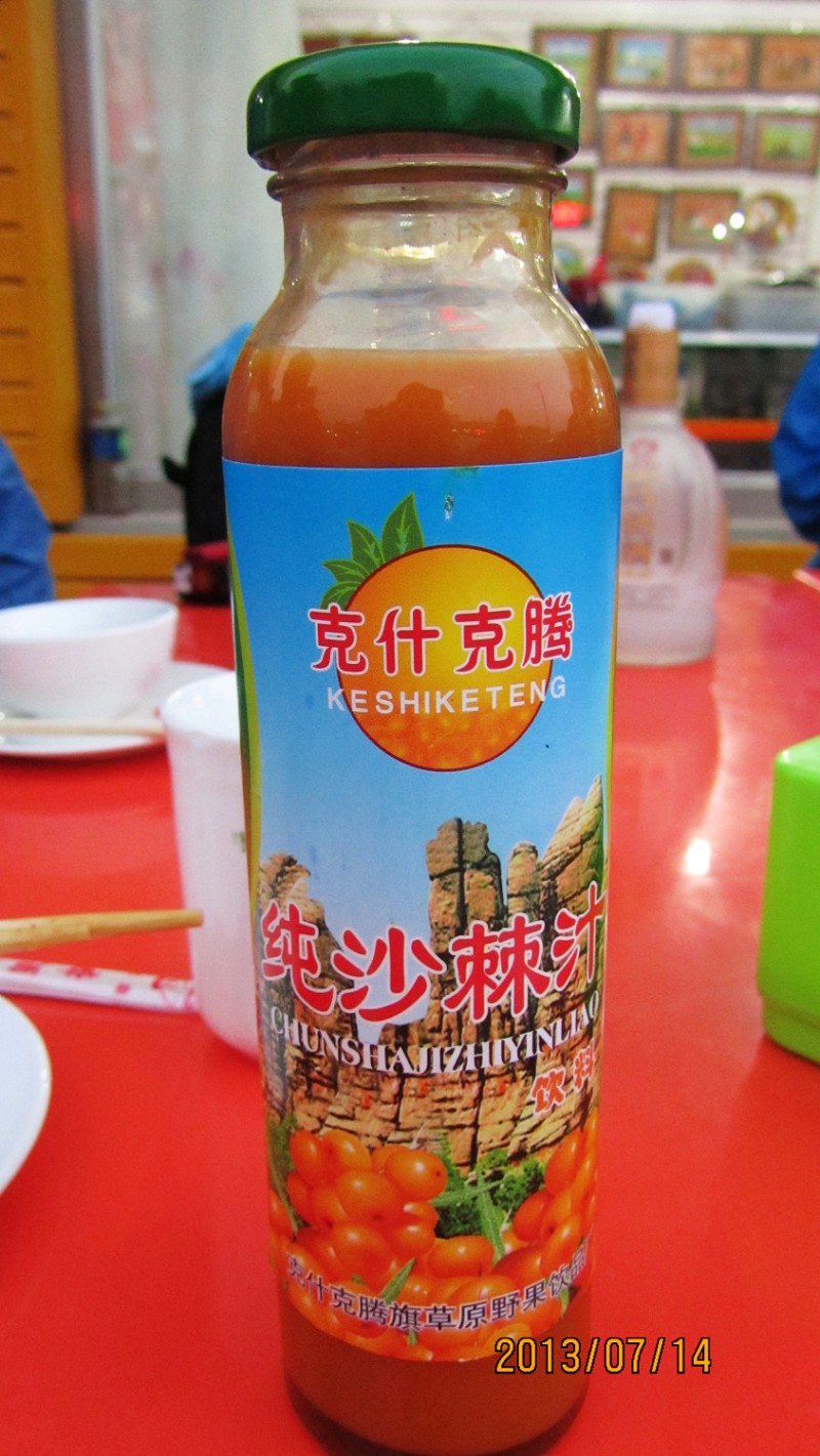 这顿又喝了新鲜玩意儿:酸枣汁。比沙JI汁好喝,但是比不得沙棘汁的营养噢!