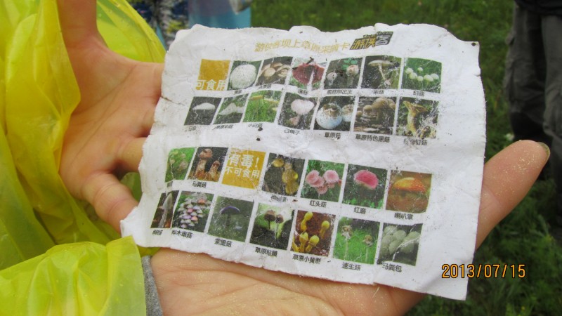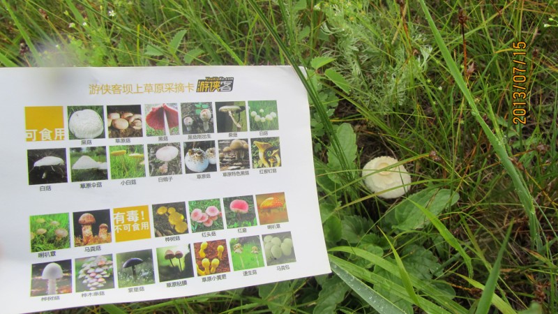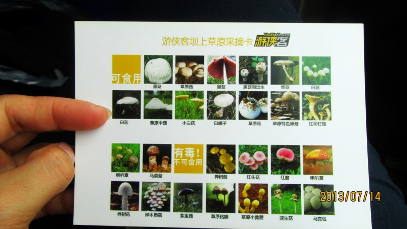 可是,很快就被越野车司机告知这个是马粪包!!!就是不能吃却长得灰常可耐的马粪包!我翻出蘑菇卡一对照,果然是它(右下角那个)!呜呜呜扔掉扔掉全扔掉!