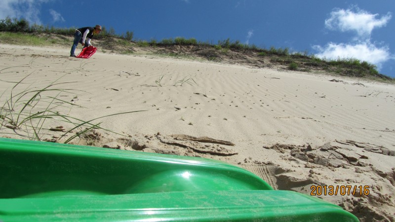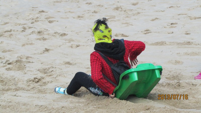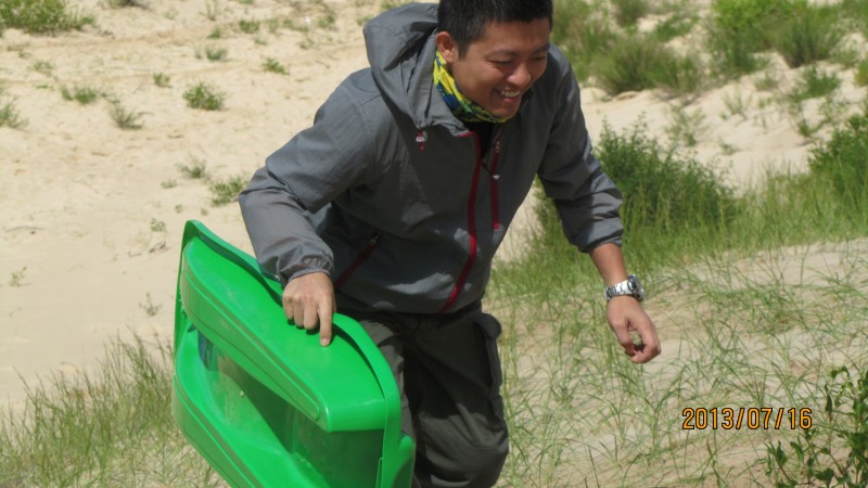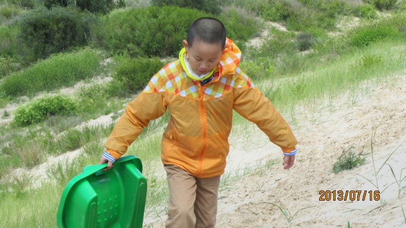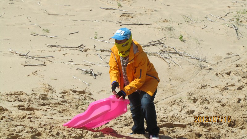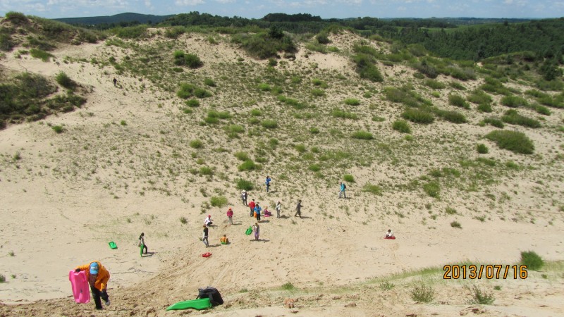 一批队员去了被清理过树枝的场地,我停在半道上,决定从这里开始滑沙。谁知第一滑便摔了个吃屎状。。。。没有经验的缘故,一路摔过去爬起来顿感没有想象中简单。第二滑仍然不顺利,由于偏离轨道,我被一旁的树枝挂到,迅速挂了彩。2次下来,心里变得有些不安。费劲地爬上去,低调把急救包拿出来,给受伤手指包扎好。被队员知道多丢人啊,低调处理。接下来的半小时左右,我一直坐在高处看大家表演。哈哈哈~~~笑屎啊~~~~