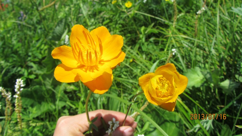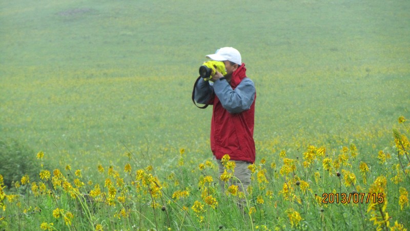 返程途中,经过一片金莲花地,我们惊喜地下车,惊喜地扑过去·····拍集体照····