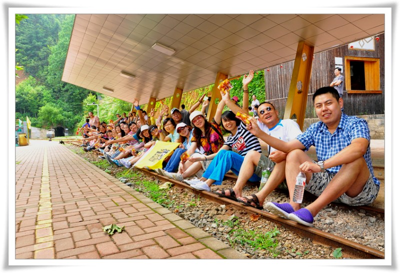 另:旁边的其它旅客,看着眼睛都直了,嘴巴合不上拢了。我们这里,又是卧轨又是离别的,人家肯定在想:这导游哪里来的,疯了吧,问题是还整来了这么一帮疯子!哈哈..........七院,笨蛋!