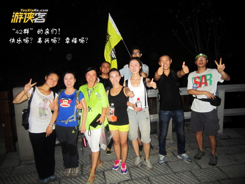 被1.5L从昨天晚上催到今天晚上!总感觉,游记发发!总要留点点那么的记忆和内涵在里面~~~想了很久很久~~~~这次爬的山算不是那么的累!却是那么的险!想想后怕的感觉,许久了,还会有这种感觉在记忆力....... 出发的太仓促,还有好多队友没来得及认识,就匆匆拍好集体照出发了!洞洞鞋也能走、坚信~ 哇,沿途中见到赤露上身的内裤农民、乱叫的狗儿~什么的力量叫我们如此疯狂!什么的信念叫我们如此坚持不移! 能在这里挥汗、、、、你们、、、会不会很放松?很开心呢?很幸福呢?