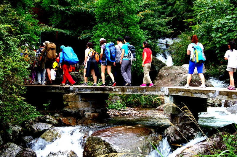 后队到此桥后沿盘山道继续前行,错过了花溪最幽静的一段。