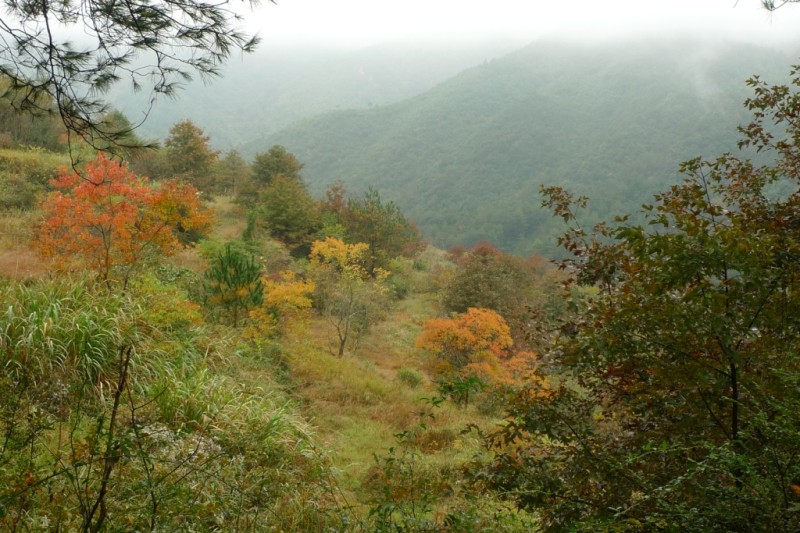 3、沿路上山的风景,从南屏乡出发到济公殿以黄叶为主,可惜还未到时候,叶子才刚刚泛黄,所以片子不多。相信叶子全黄的时候真的很漂亮,这也是我喜欢的秋色。
