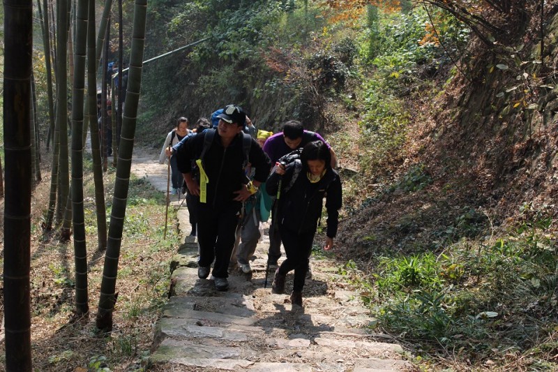 由于蒋公道一路向上,无任何缓冲地段,因此在爬山进行约30分钟后