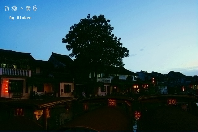 暮色渐沉,站在胥塘桥上放眼望去,只见家家灯火和急着归程的小船。