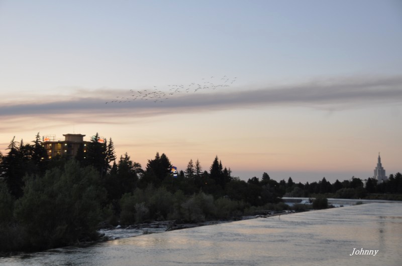 OK,洛杉矶时差倒的也差不多了,启程从LA飞到黄石公园边上的IDAHO FALLS小镇住下,准备明天一大早在小镇上的ENTERPRISE租车前往黄石公司,车子是在网上提前预定好了的。小镇非常美,安静,和LP在镇上河边走走,行人很NICE,中国人嘛,最关心的就是房价,一查,这里的房子才10-12万美元一套,便宜啊,可是HOUSE(别墅)哦!