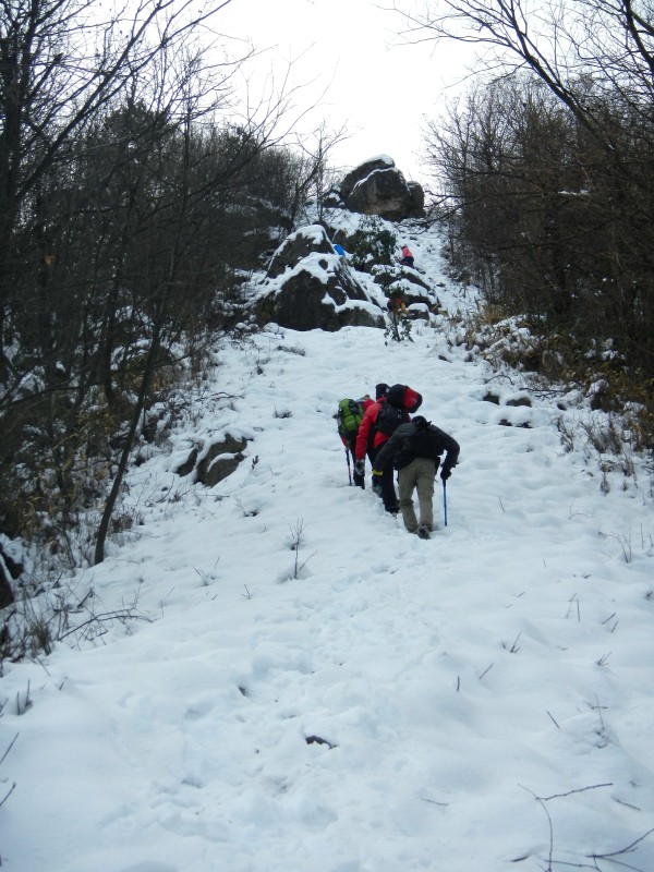 出发前一周就听说七尖下雪了,还看到了队员行走在积雪没至脚踝的山道上的照片。于是心中多了一份冲动与期盼;于是在准备中增加了攀越雪山的装备;于是在急切中等到了12月27日的出发。