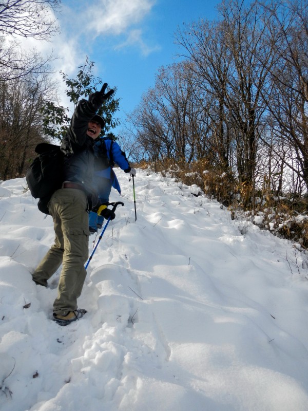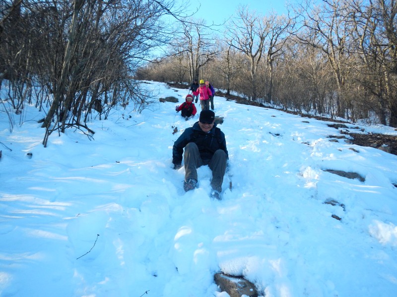 有付出就会有回报,绵长的山坡成了我们的滑雪场,我们一路欢呼着把冲顶的劳累抛向身后