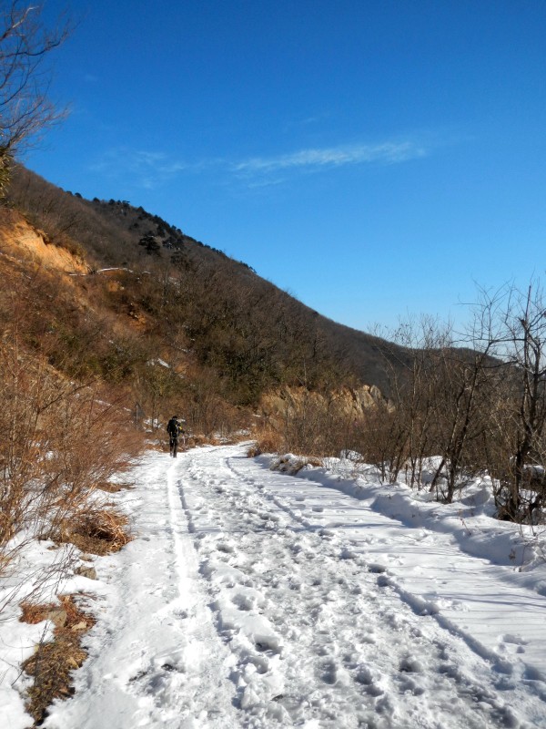 脚下的积雪开始越来越厚,脚底开始不时打滑,