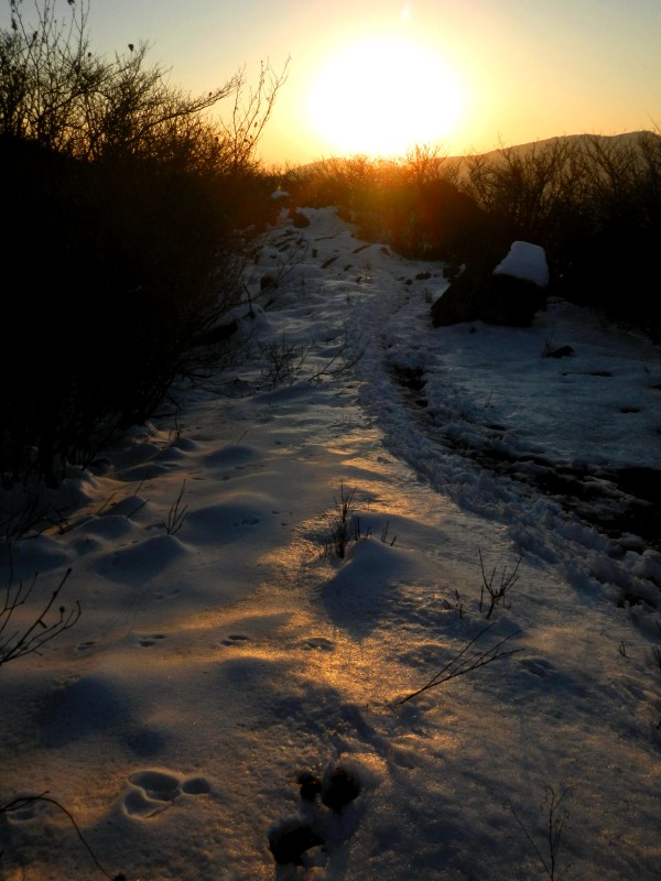 冲顶之路,我是寻着野兽的足迹、凭着半个月前途径时对地形的记忆,趟着齐膝深的积雪踩出来的。