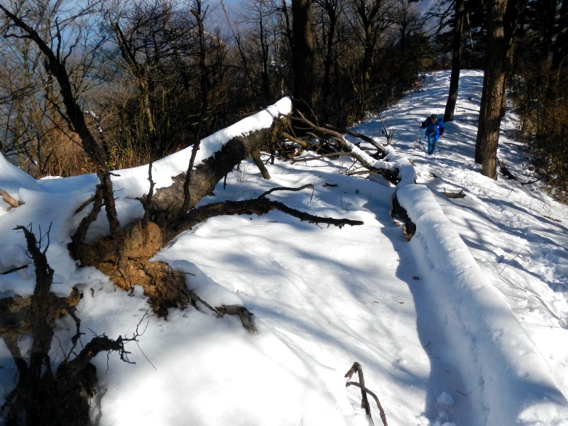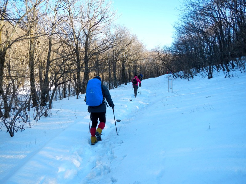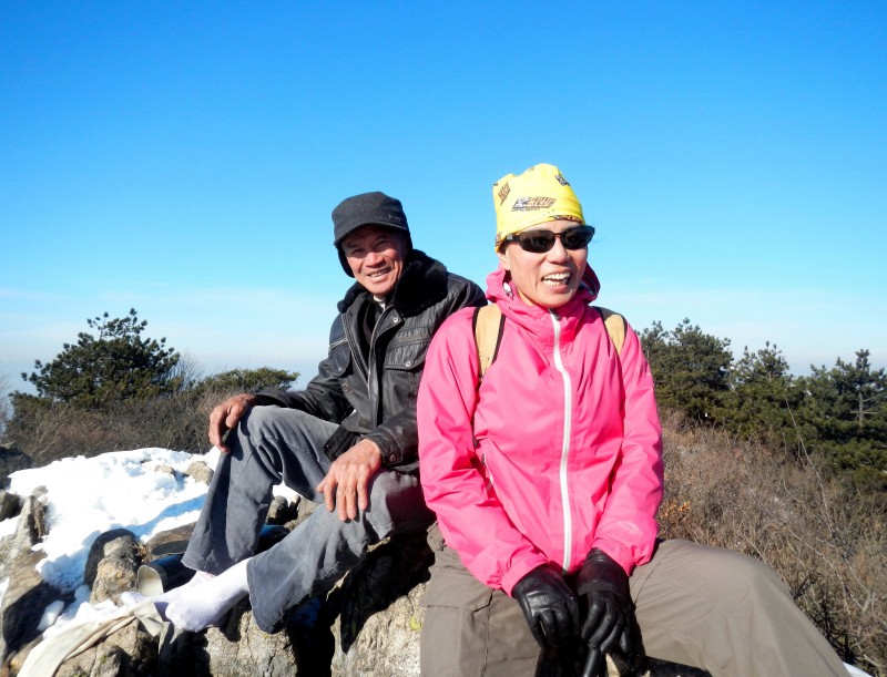 映着朝阳,我们再次步入林海雪原,穿越海拔1506米的桐杭岗,我们再次留影,纪念我们的七尖之行