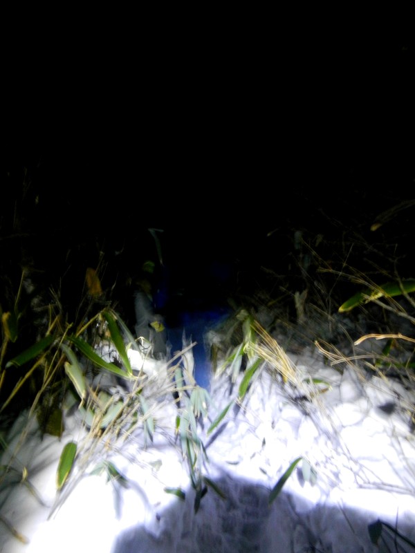 时间飞逝,天目山径渐渐没入夜色,我们行色匆匆,来不及观赏节理峰上奇形怪状的火山岩石,直接横向切入丛林山径,向海拔1326米的千亩田农家乐挑灯急进。