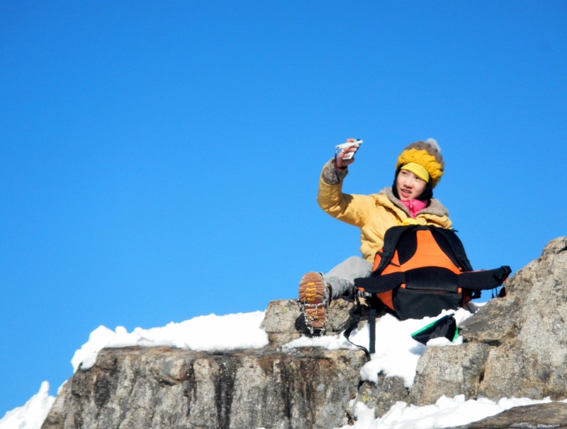 虽然攀登的路途很是艰辛,但大家依然兴致高昂,不时停下来拍照,还有......