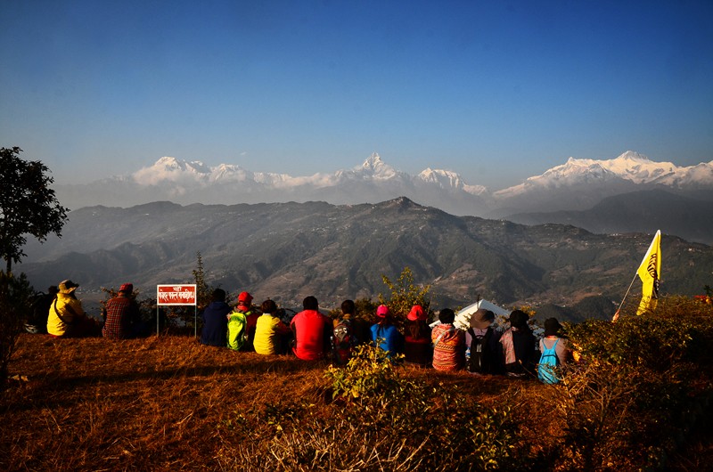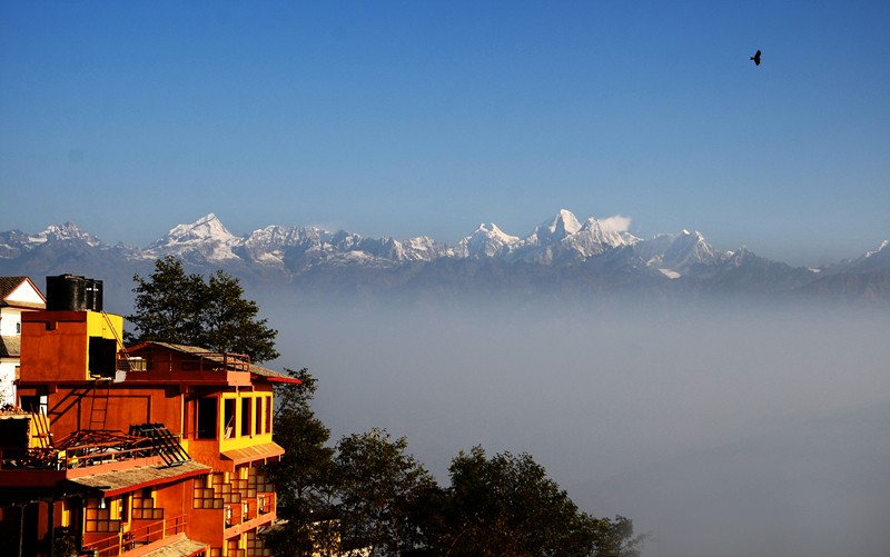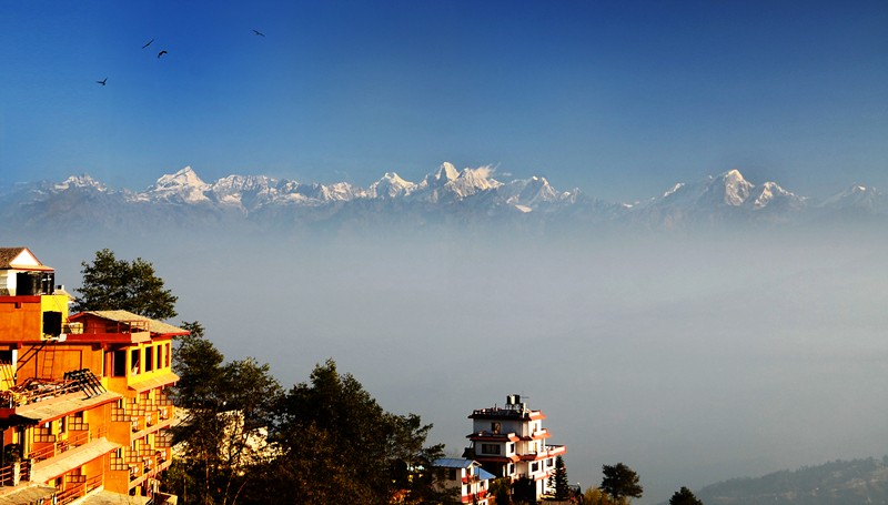 纳加阔特离加德满都市区不远,车程1.5小时,是加德满都谷地周边最负盛名的度假胜地。山顶海拔不到2000米,因为视野辽阔,没有遮碍,从西边的道拉吉里峰,珠穆朗玛峰,一直到东边的康城章嘉峰,喜马拉雅山群峰景致尽收眼底。每年10月~来年3月的干季,天空晴朗清澈,全球的旅行者都蜂拥而至。这里也是当地年轻人谈恋爱的好去处。