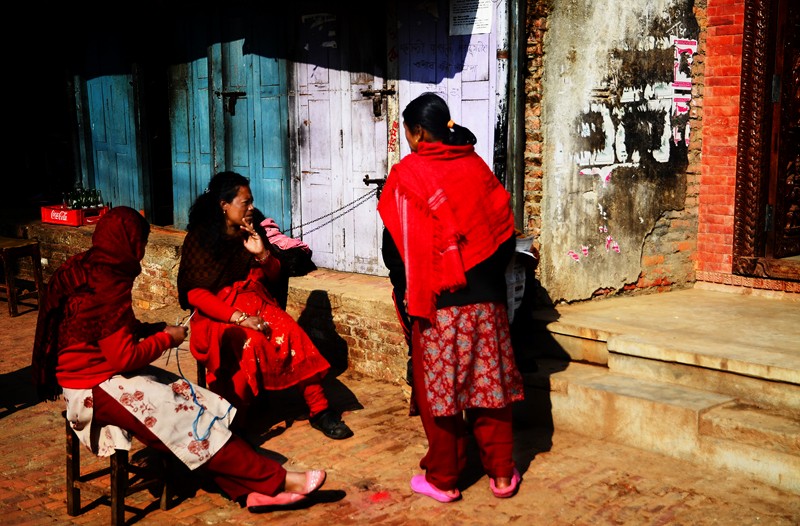 漫步在巴德冈古城,这个由红砖建筑簇拥成的城镇中,依稀能窥见尼泊尔的绝代风华。古城非常的干净整洁,街道狭窄而曲折,穿行其间,门窗上的木雕工艺异常精湛,妇女在井边打水,老妇在织布,儿童在嬉戏,陶匠在捏土,闲来无事悠闲的晒晒太阳,美好的时光在这里停滞...