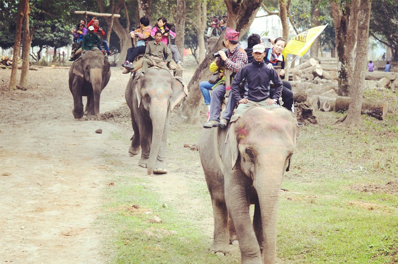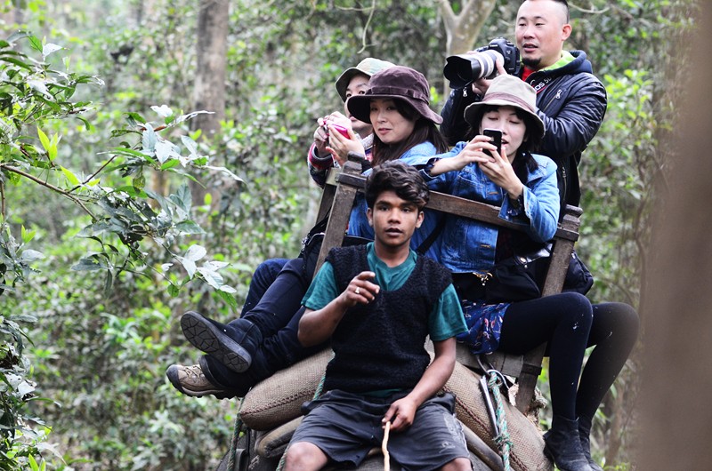 许多人来奇特旺就是为了骑乘大象。骑大象可不只是为了有趣,大象的气味能掩盖人的气味,深入丛林中较不易惊动其他动物,而且大象体型高大,坐在大象背上,可避开其他动物的攻击。