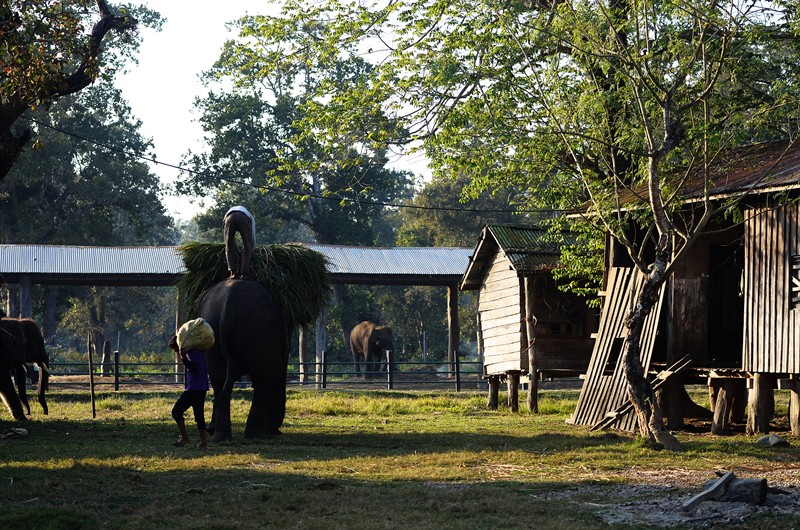 来奇特旺最主要为看大象,小象的繁殖地肯定要去看下,饲养员在给大象、小象喂饲料