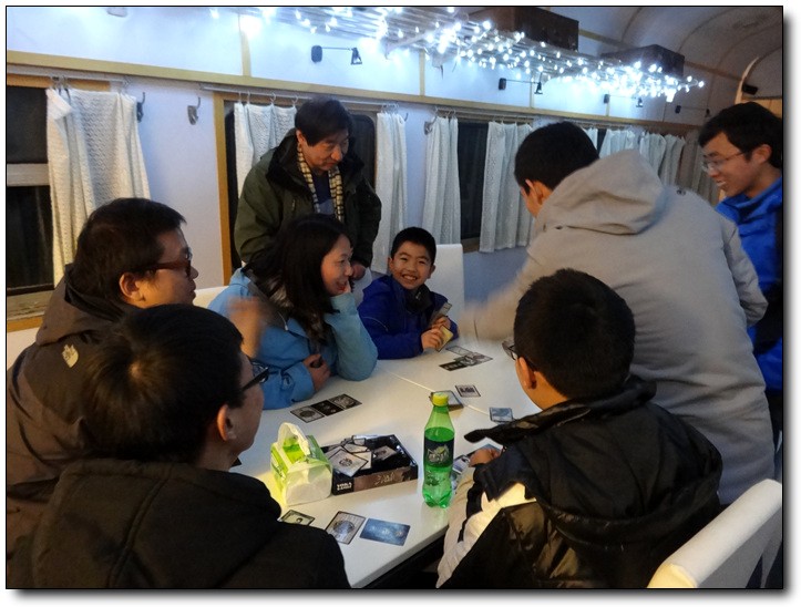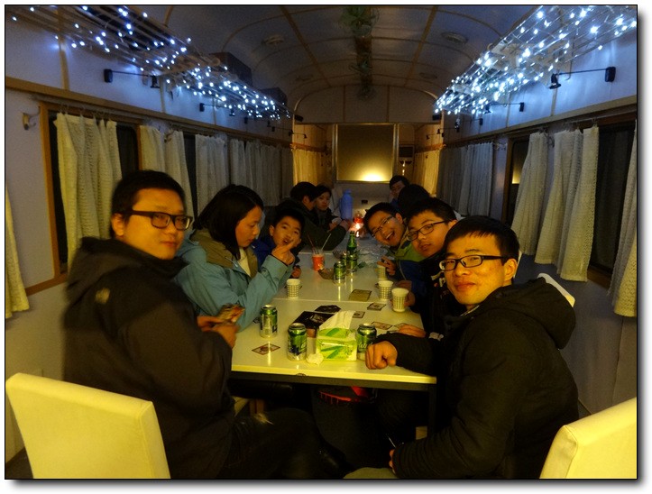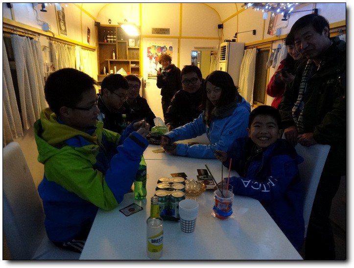 酒吧后面有节小火车车厢,据说是酒吧老板从上海运过来,大家在车厢上玩三国杀。