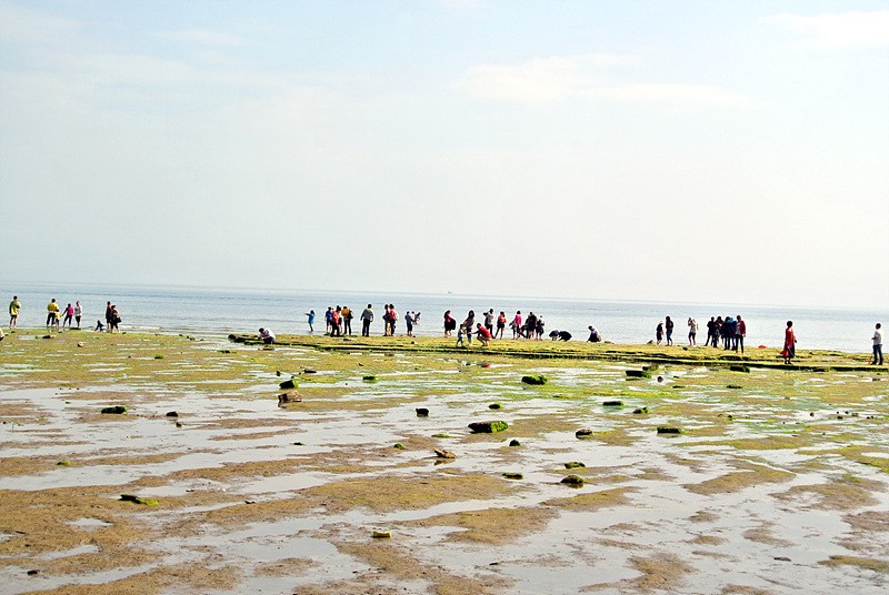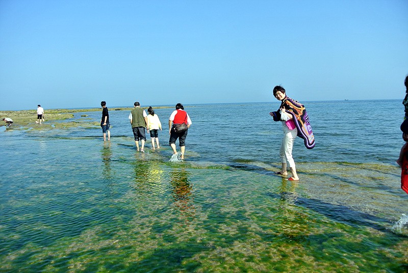 退潮后的五彩滩,好多小螃蟹好多水草和海带,这里充满了原生态的野趣。。超爱这里