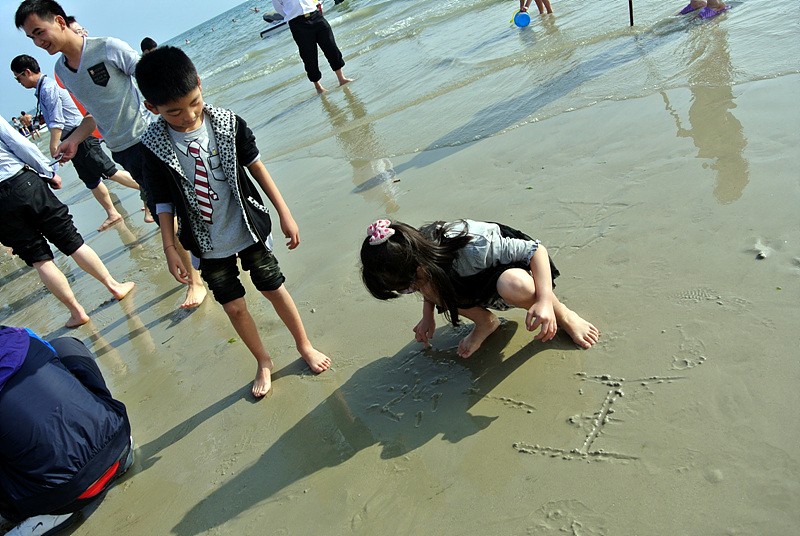 洁净的沙滩各种娱乐项目,当然,小朋友们最喜欢的应该是在沙子上写字和画画啦。。。