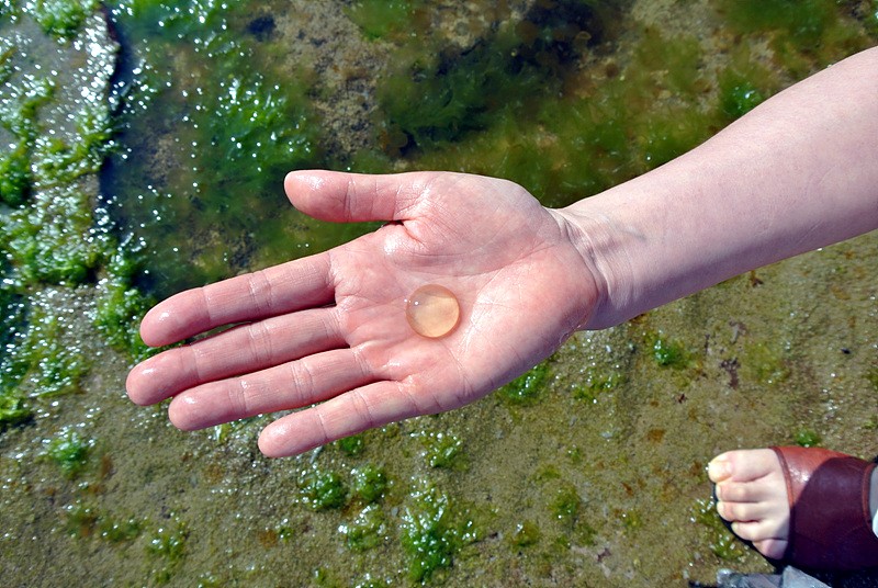 水里漂浮了很多这样的鱼泡,一碰就破了,好好玩的