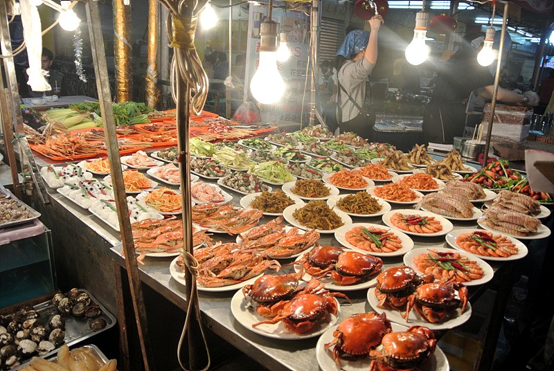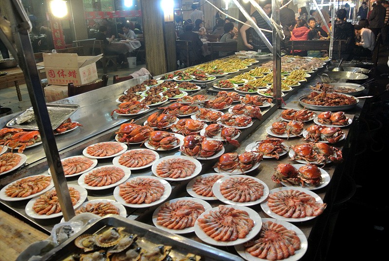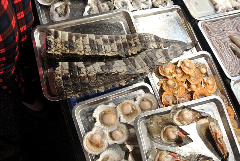 各种海鲜大餐。。甚至还有鳄鱼。。