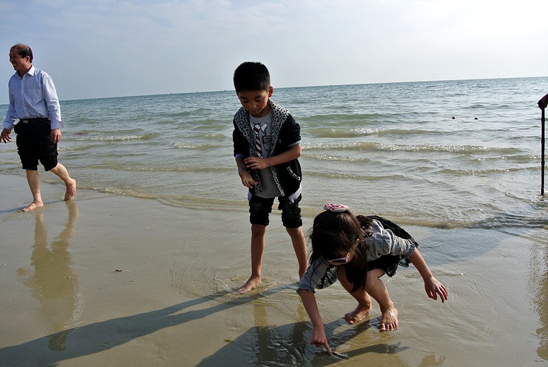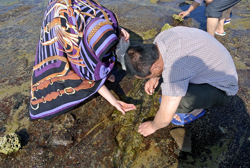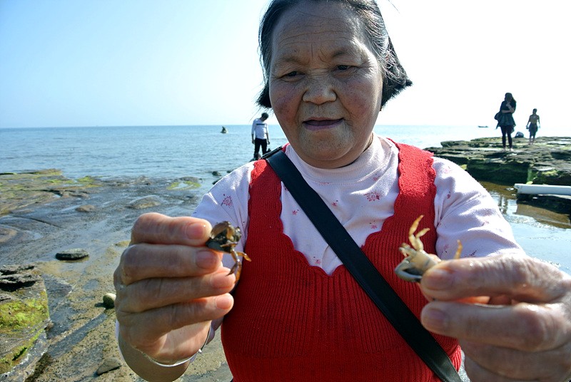 这位阿姨随手捡了几只小螃蟹,问我要不要,想送我咧。。
