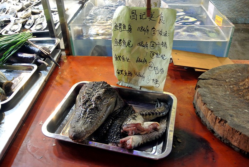 这里还有超级恐怖的鳄鱼在卖。。你敢吃么?