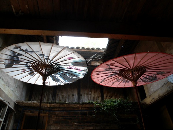 油纸伞作坊如果仅从油纸伞作坊那漆黑而斑驳的门墙来说,真的无法吸引脚步的靠近。因为看到路边的指示牌才爬上那一排石阶,没想到那间小作坊里正在演示着快要失传的油纸伞手工制作工艺。现在油纸伞差不多都是作为旅游纪念品,相对需求自然是有限。辉煌逝去,落寞登场,兴衰乃自然。