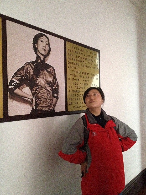 蝴蝶湾绿地对面就是我的校友:张爱玲书屋了。书屋隐匿在石门二路社区图书馆内的一角,并完好地保存了书屋的摆设,浓浓的老上海情怀。在这里,捧一本好书,细细品味再适合不过了。