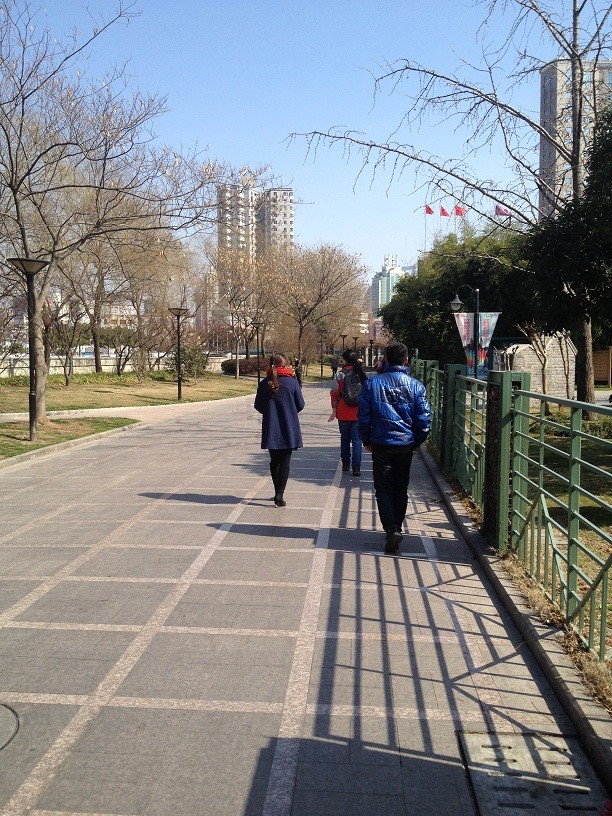 搭乘地铁1号线,汉中路3号口出。我们向本次的第一目的地:蝴蝶湾绿地迈进。