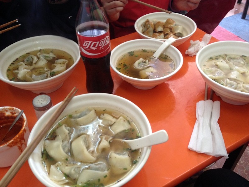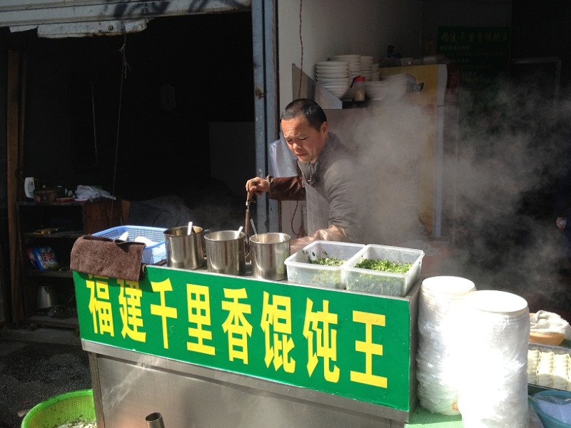 离开张爱玲书屋后,饥肠辘辘地大伙儿开始了觅食之旅。怎奈南苏州河边散落的都是旧房子,馆子都没几家。我们一直走到新闸路才吃上了热腾腾的福建千里香馄饨王,又香又好吃!