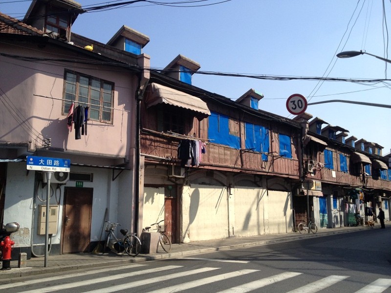 大田路老式的房子窗户都糊了一层蓝纸,好扎眼。