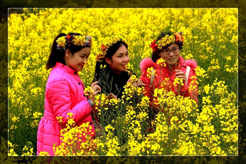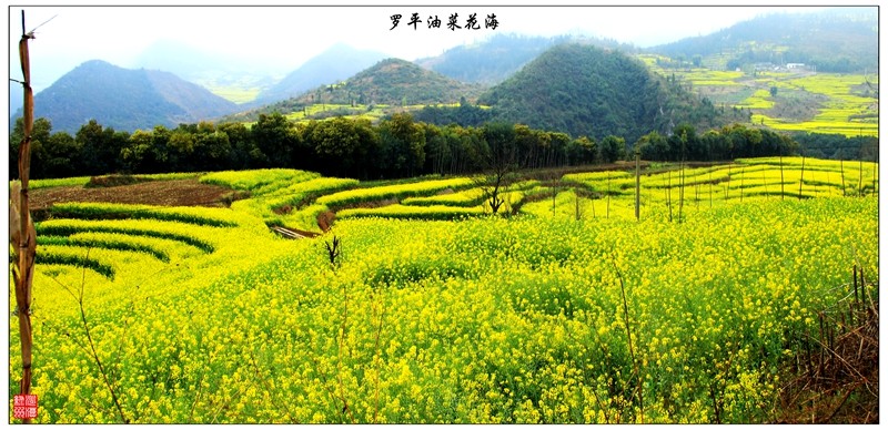 罗平是油菜花的王国。但罗平又是一个多雾的,湿湿的,当地人称“下冒雨”,这次也是在油菜花盛开的时节到的罗平,但迷茫的雾气就像巨大无边的白色轻纱将罗平坝子包裹,花海和锋丛也都被隐藏了起来,令我们沮丧的是据说初春季节里,阳光对罗平来说是吝啬的,大雾弥漫是常态,所以本次唯一稍有遗憾就是罗平的花海了。去了九龙瀑布,途中路过几个被花田簇拥着的小村庄,在薄雾的笼罩下显得那样安静、祥和。散落在九龙瀑布群的油菜花,与瀑布相映也算是给我们一个补偿吧了。那气势磅礴的浑水巨龙,多了条条洁白玉带,和山间枯黄的草木相得益彰!故有“清泉一缕飞花瀑,沁得心脾万味香”!