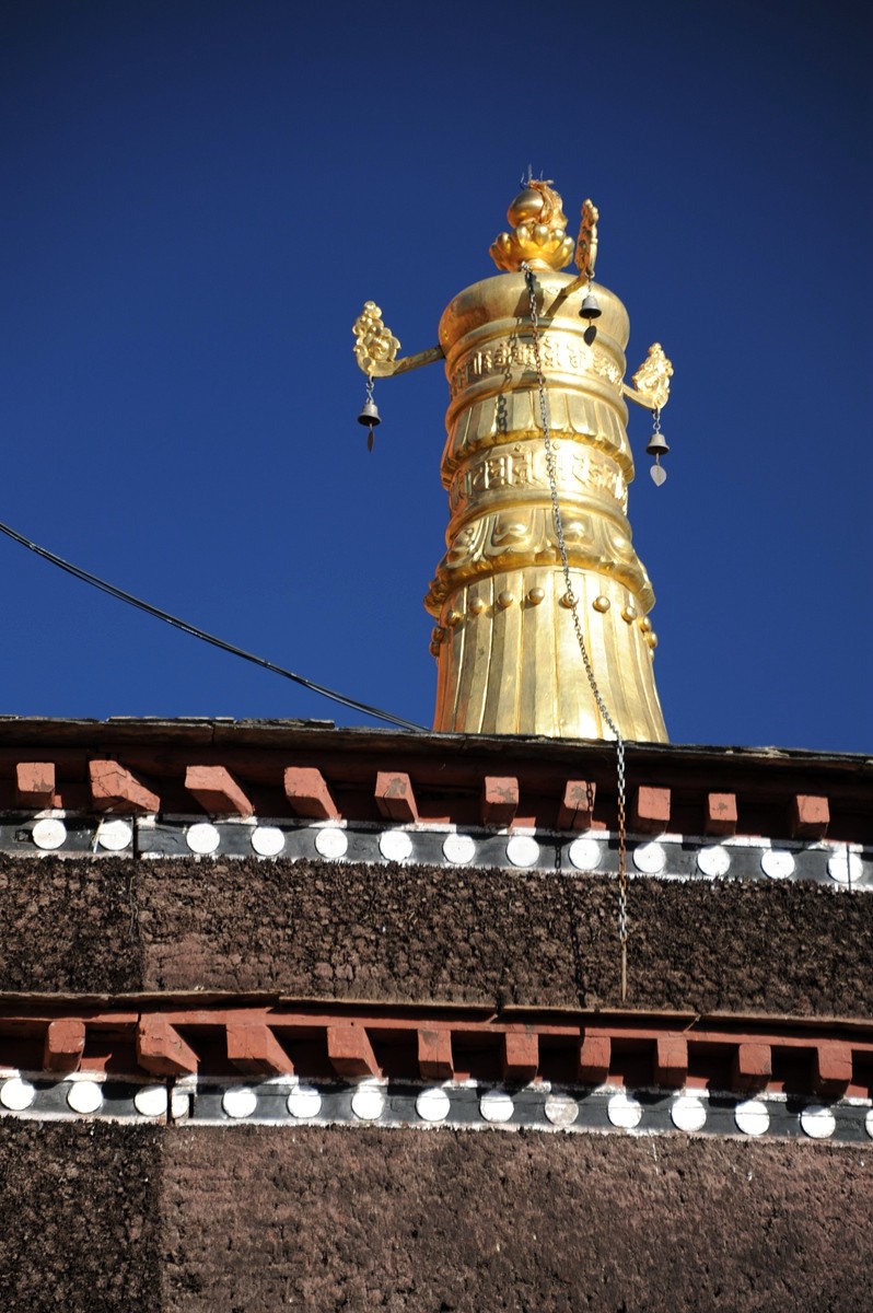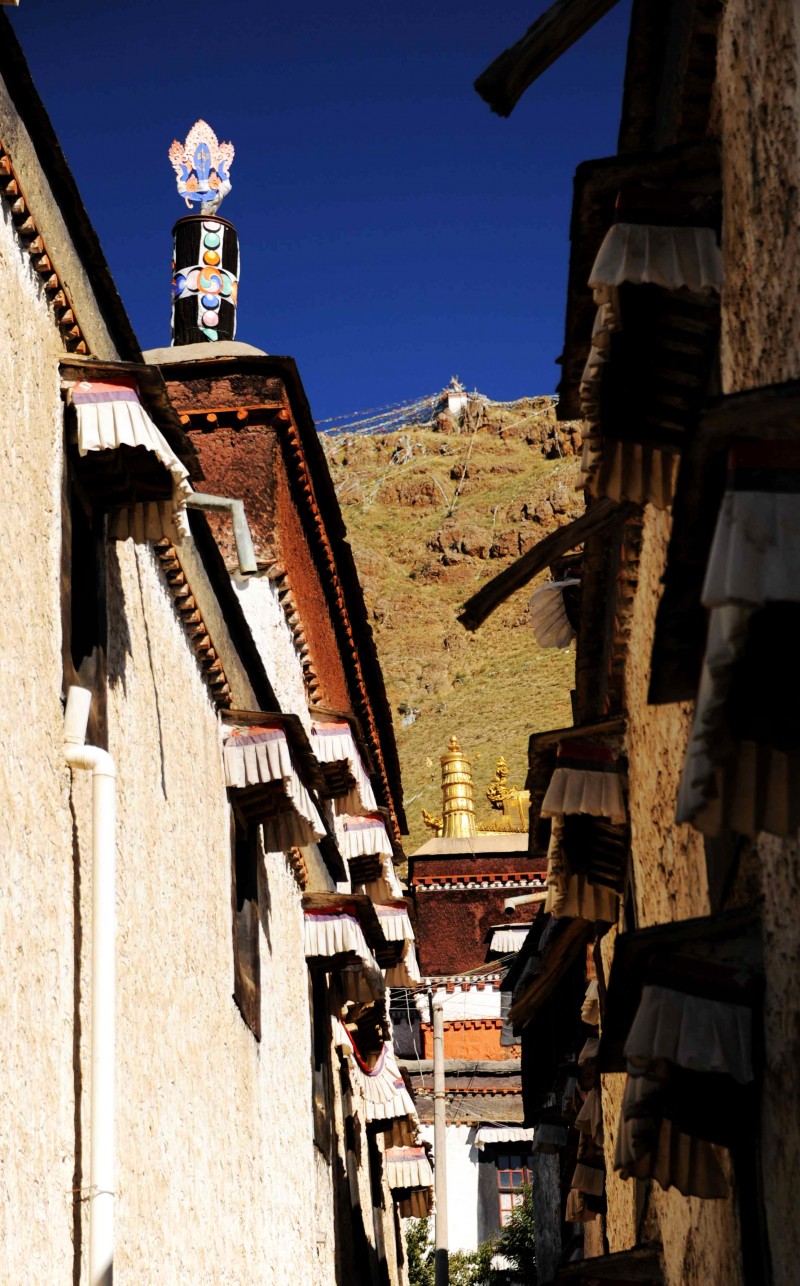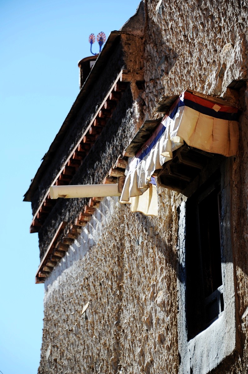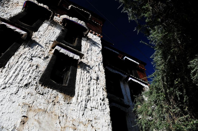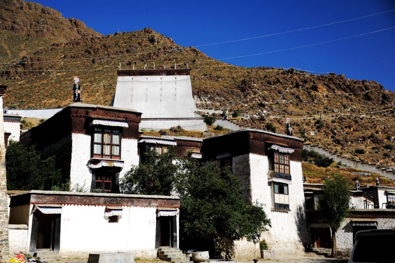 山上有面晒佛墙,当寺内举行盛大仪式时会将巨大的佛像挂在上面