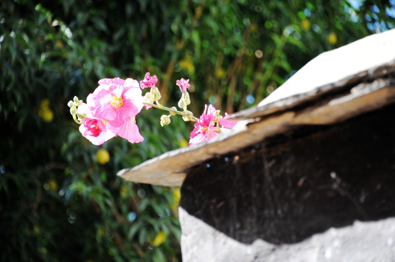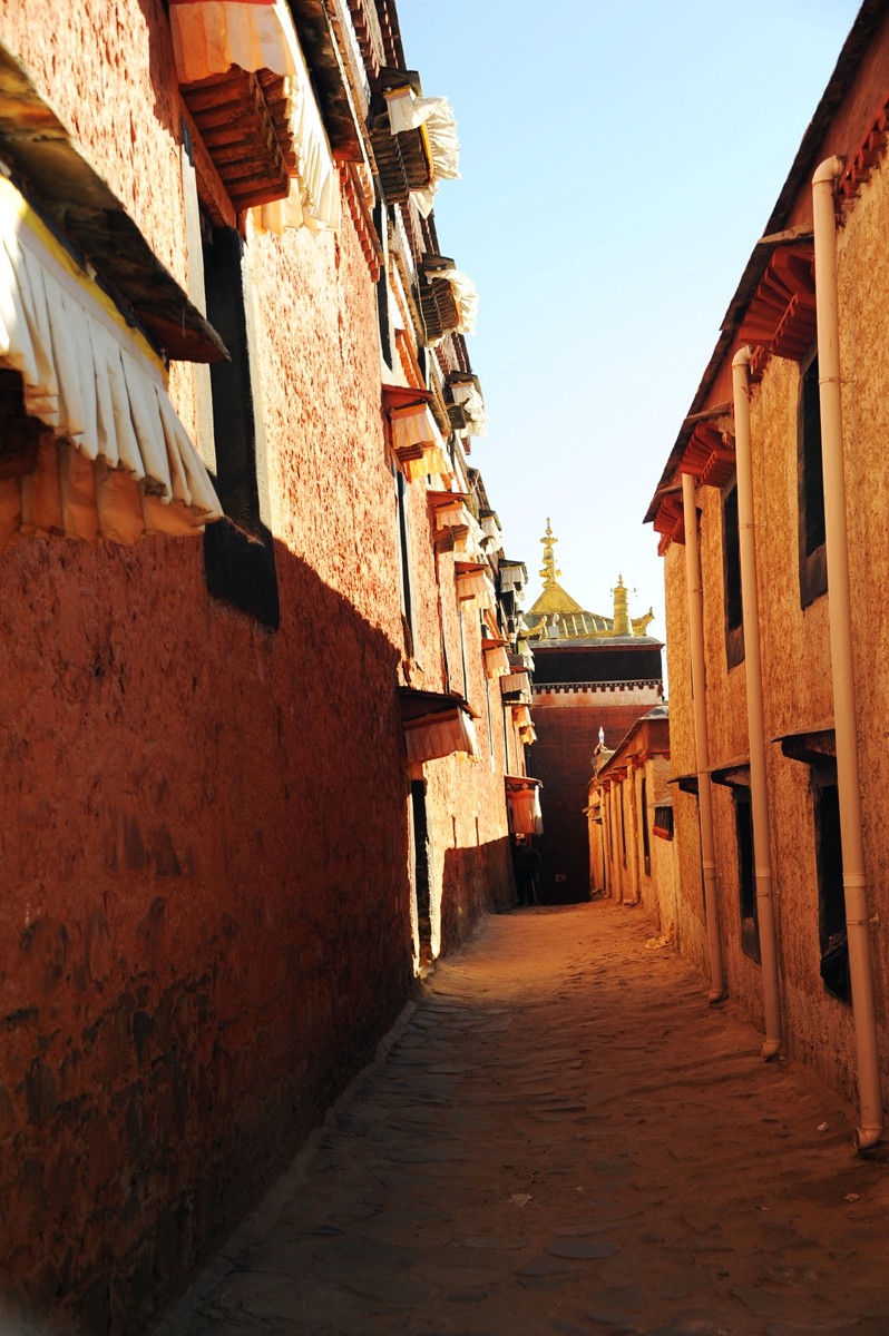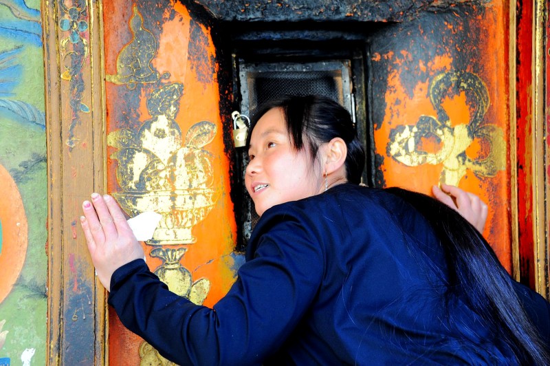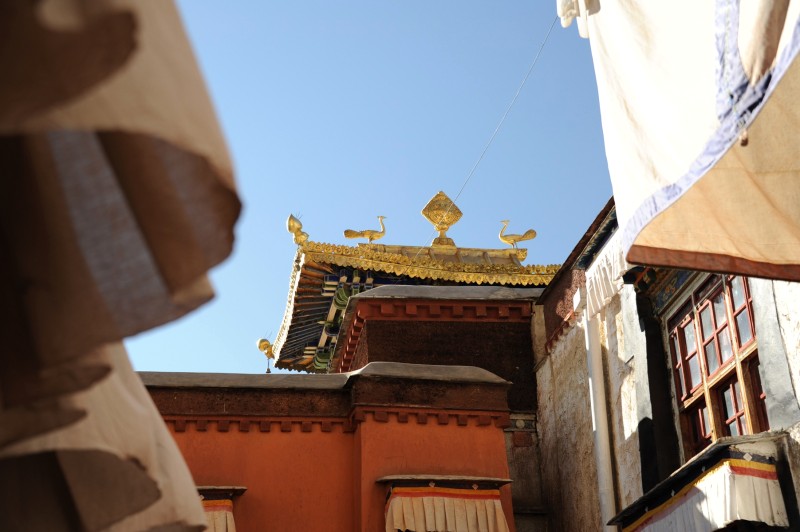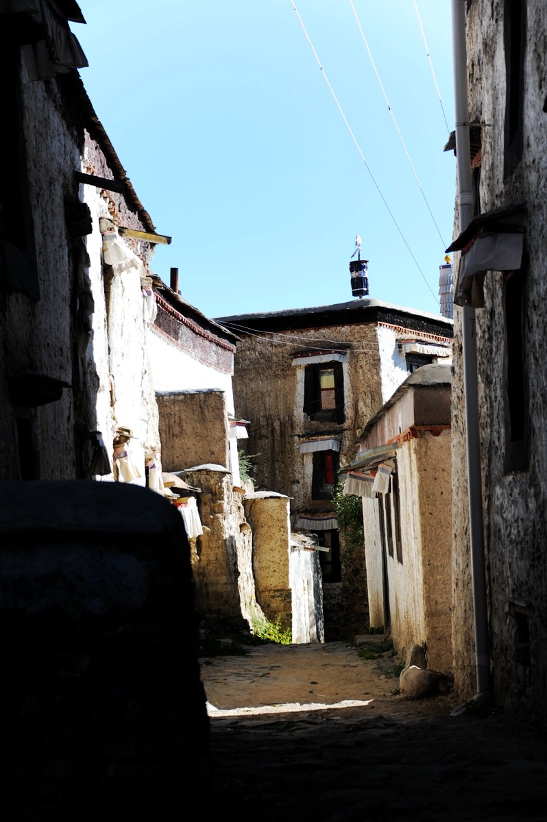 山上有面晒佛墙,当寺内举行盛大仪式时会将巨大的佛像挂在上面