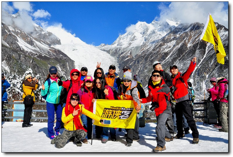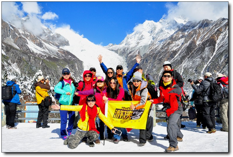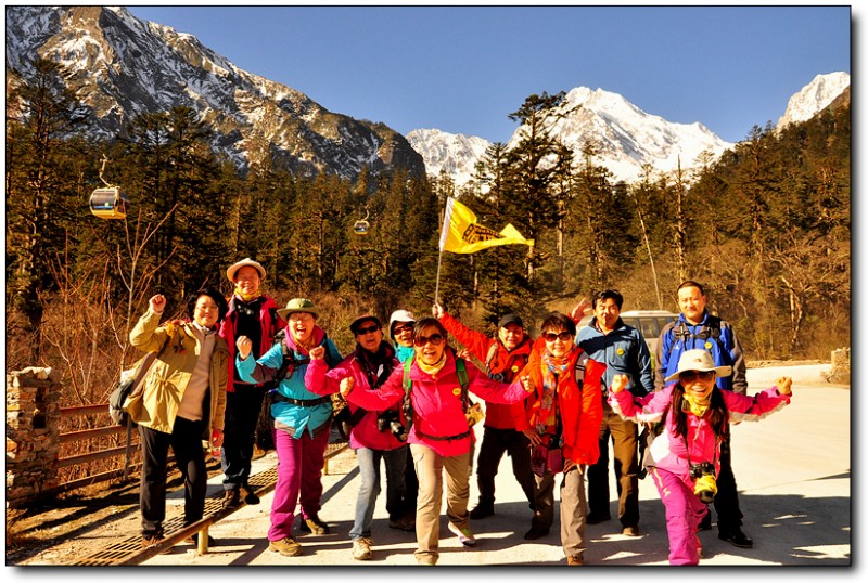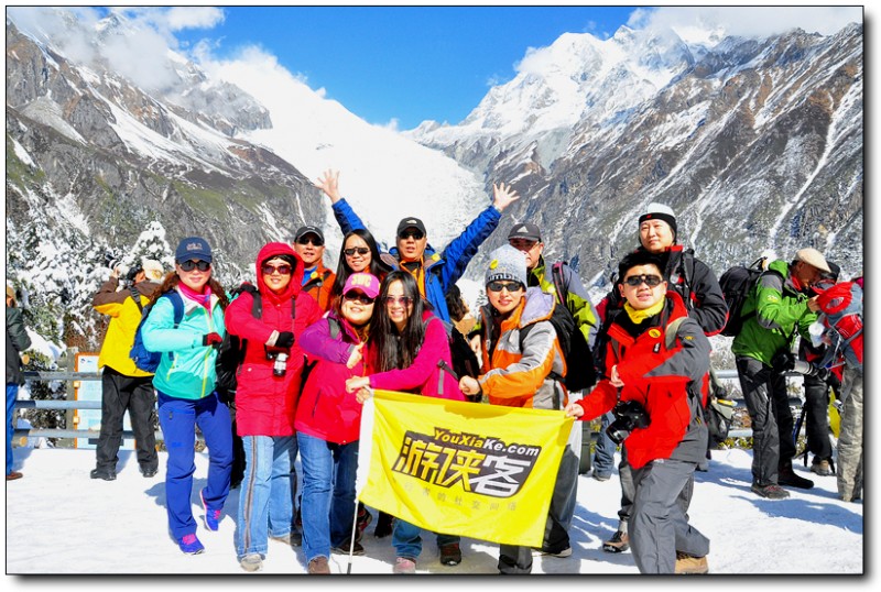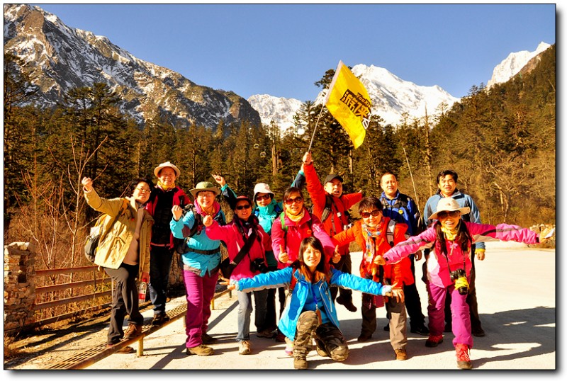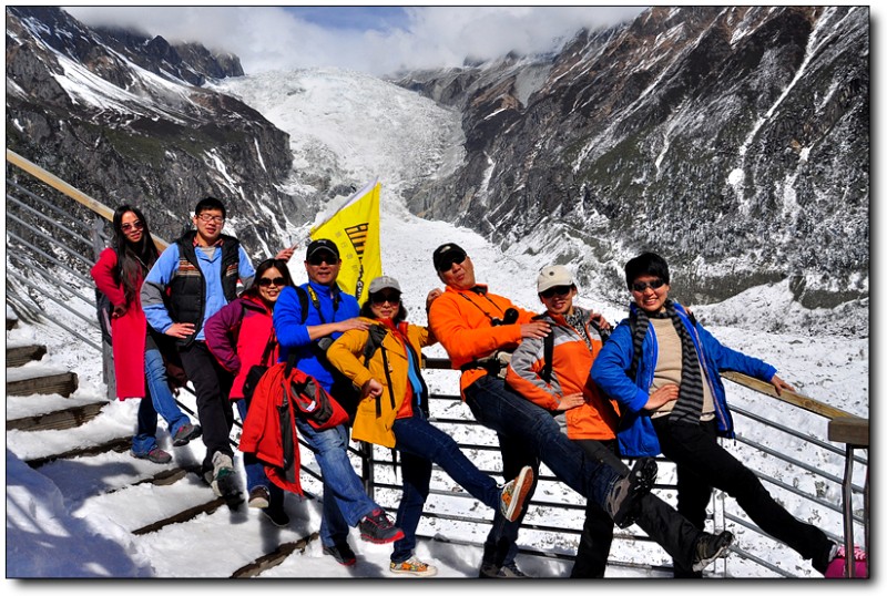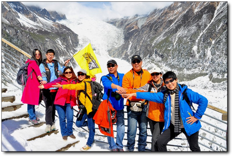 刚下车到3号营地,看到后面的雪山,大家就忍不住了,集体照自然不可少了